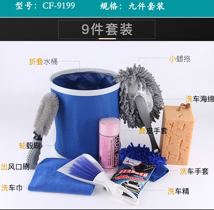 트랜스퍼폰 | 세차 세트 수건 세차 장갑 물통 자동차 청소 용품 9개 세트 CF-9199