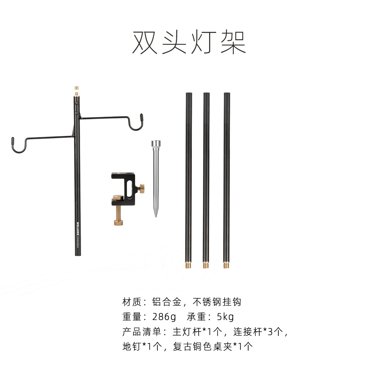 WELLHIKE 야외용 양방향 알루미늄 합금 라이트 스탠드 휴대용 캠핑 조명 낚시 라이트 스탠드 1/4 회전 인터페이스