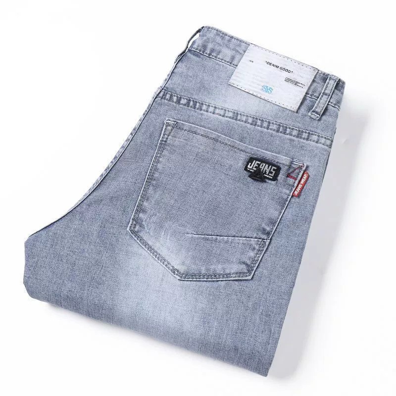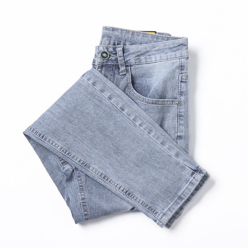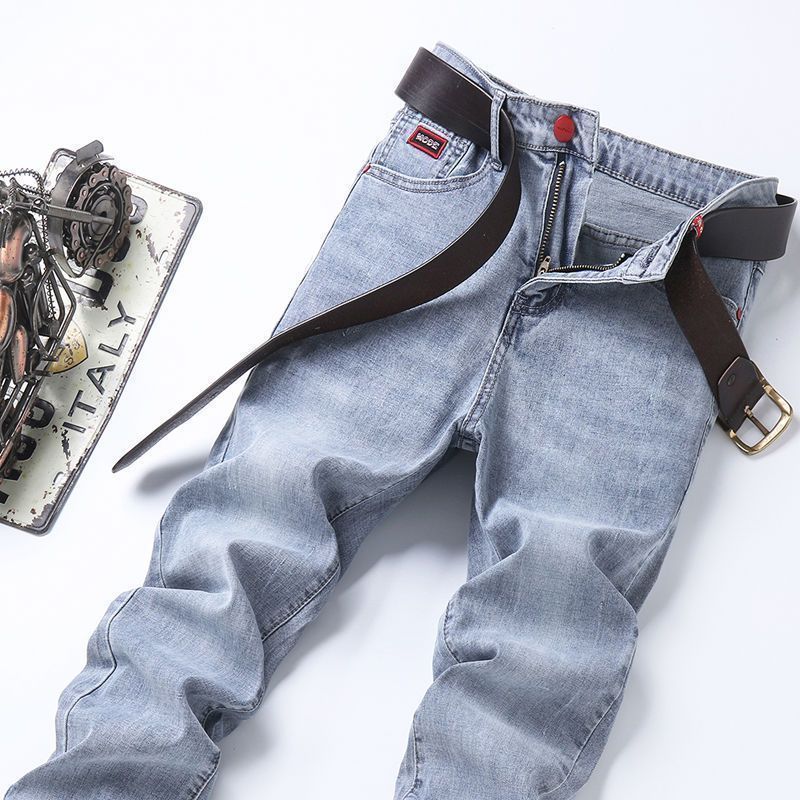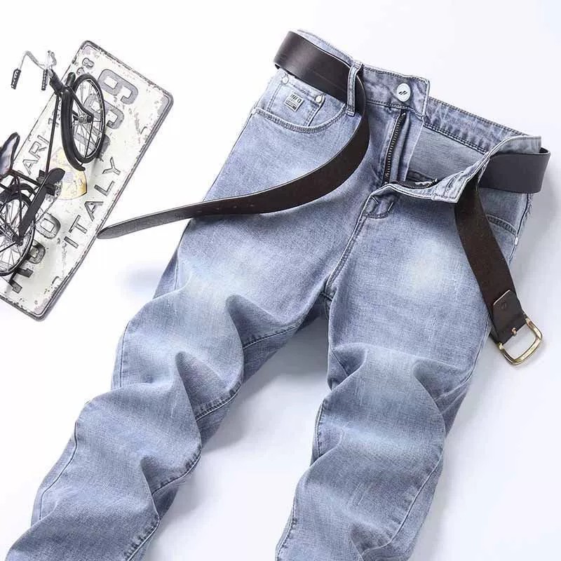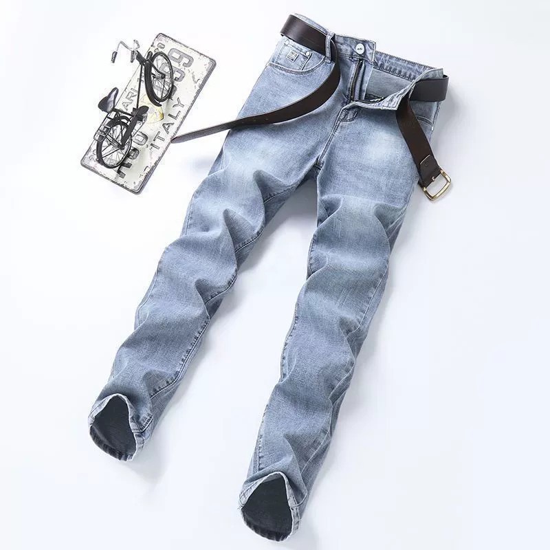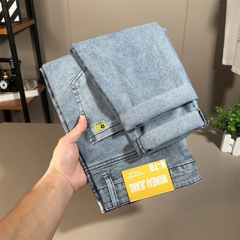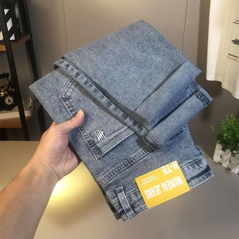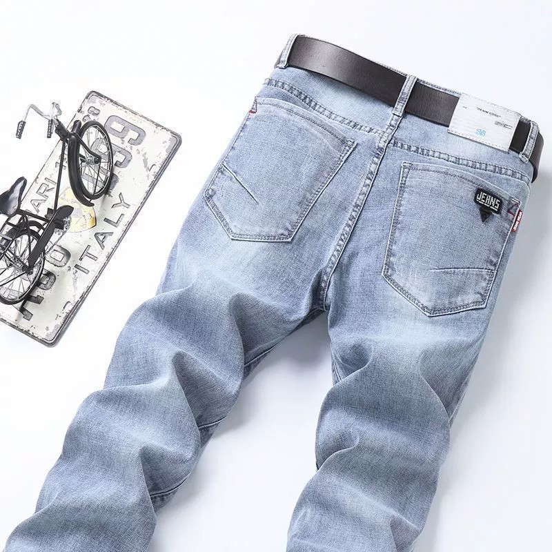 봄과 가을 새로운 청바지 남자 한국식 스트레치 슬림 핏 스트레이트 캐주얼 바지 스포츠 스티칭 스키니 바지스토어 가기