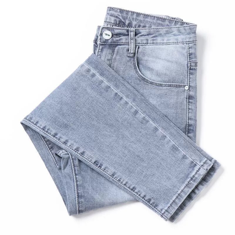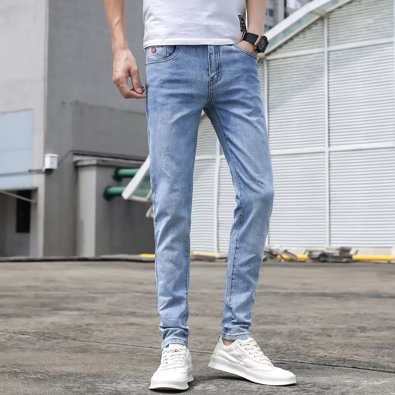 봄과 가을 새로운 청바지 남자 한국식 스트레치 슬림 핏 스트레이트 캐주얼 바지 스포츠 스티칭 스키니 바지