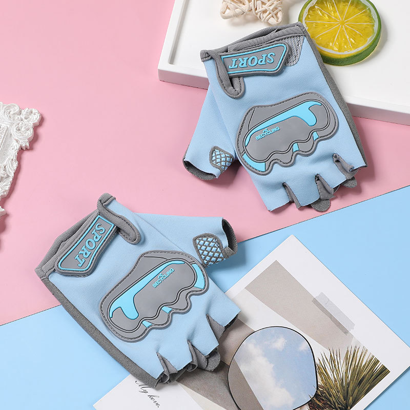소년 소녀를위한 어린이의 얇은 반 손가락 풀리 밸런싱 카 비 슬립 수평 바 보호 야구 승마 스포츠 피트니스 장갑스토어 가기