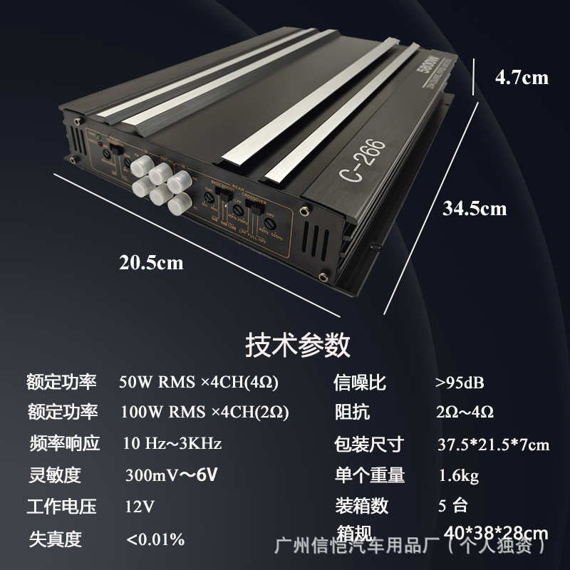 공장 직접 4채널 자동차 전력 증폭기 C-266 오디오 수정 4*50W 4방향 자동차 전력 증폭기