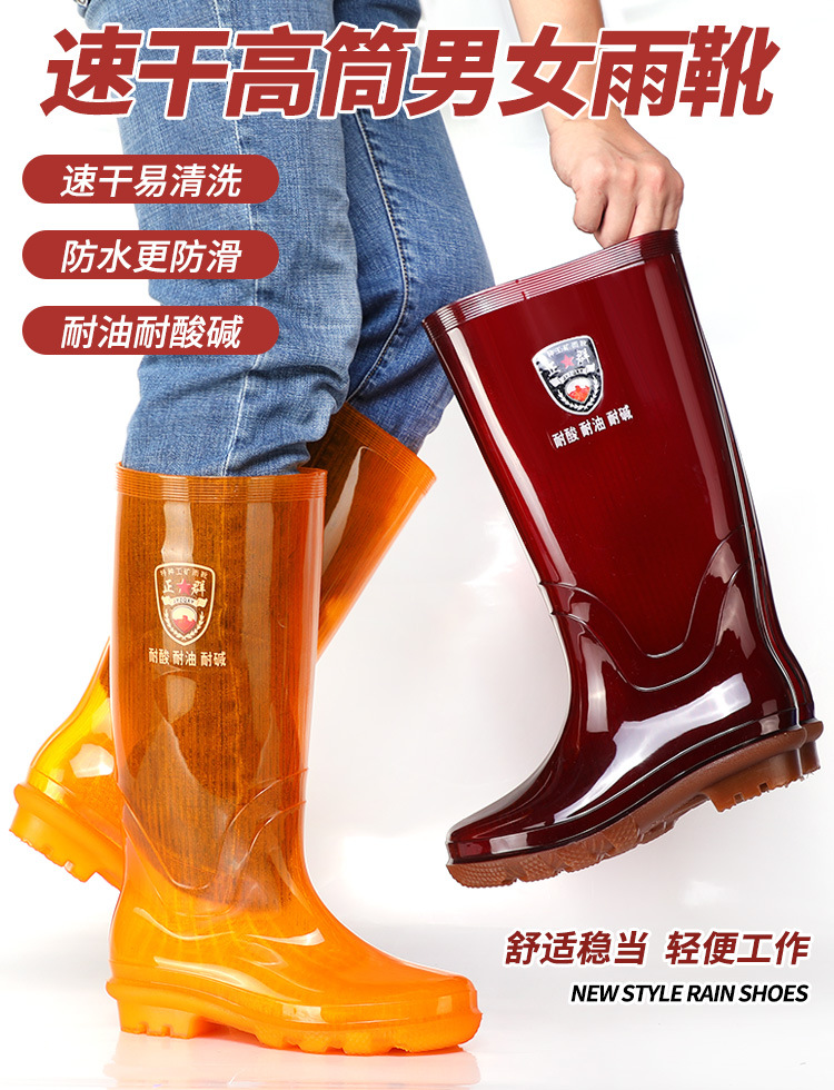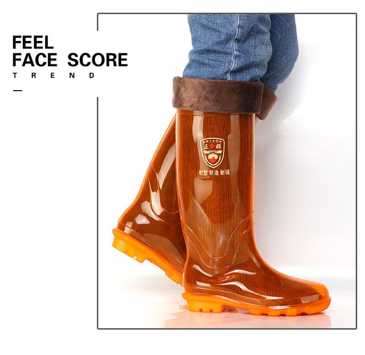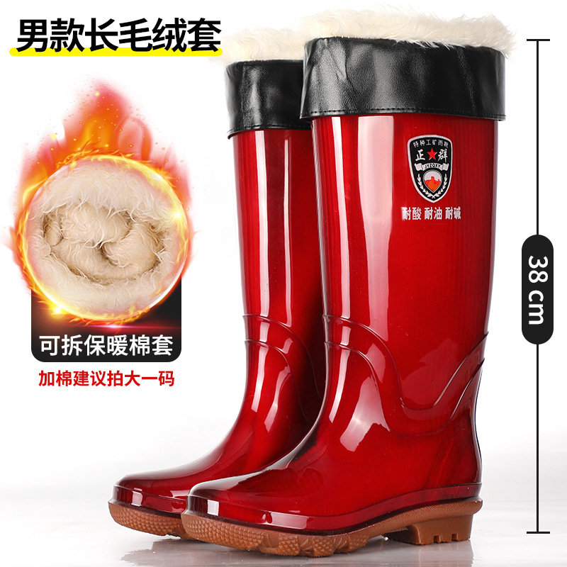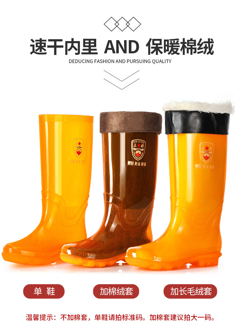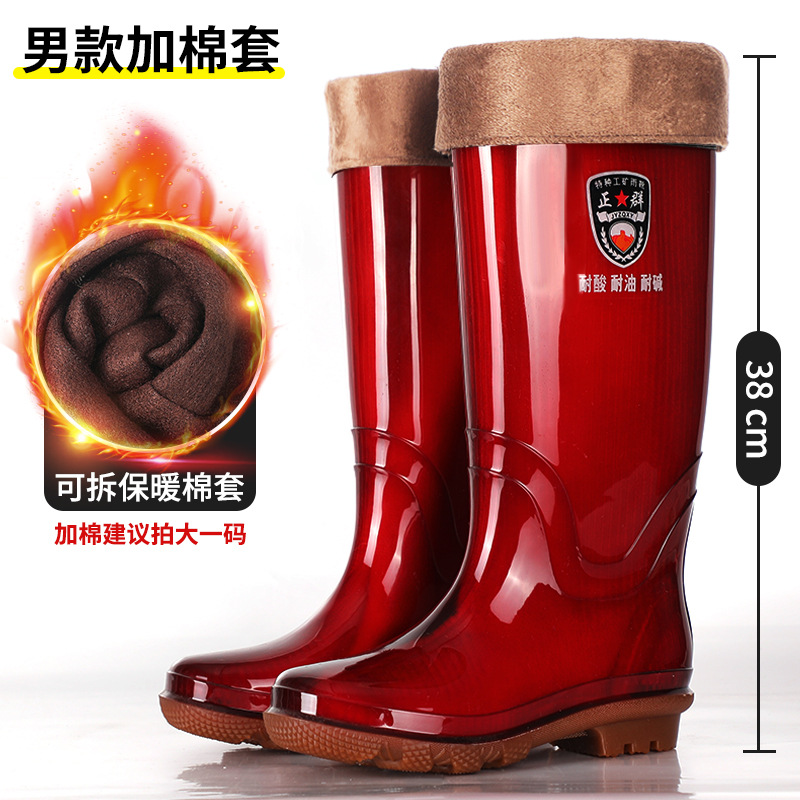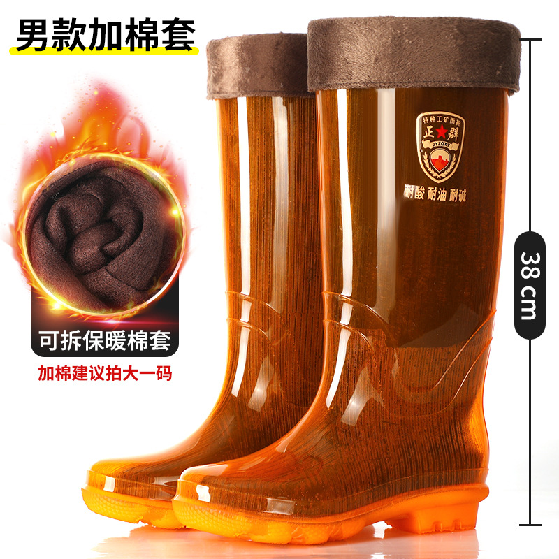 Zhengqun 비 안감 빠른 건조 장화 높은 남자의 황금 황수 신발 미끄럼 비 장화 두꺼운 밑창 따뜻한 긴 물 부츠스토어 가기