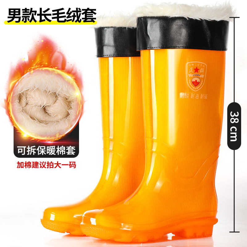 Zhengqun 비 안감 빠른 건조 장화 높은 남자의 황금 황수 신발 미끄럼 비 장화 두꺼운 밑창 따뜻한 긴 물 부츠