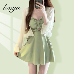 새로운 여름 수영복 여성의 순수한 욕망 스타일 스틸 Bracer는 섹시한 삼각형 얇은 꽃 휴가 수영복을 덮는 슬림 배꼽을 모았습니다.