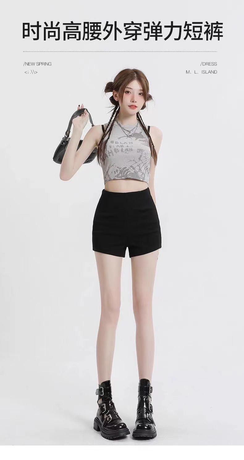 블랙 반바지 여성의 여름 외부 착용 높은 허리 슬리밍 탄성 타이트 여름 여성 Bottoming A Version 핫 바지스토어 가기