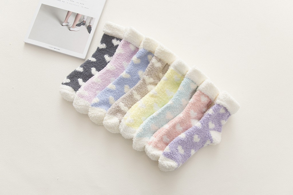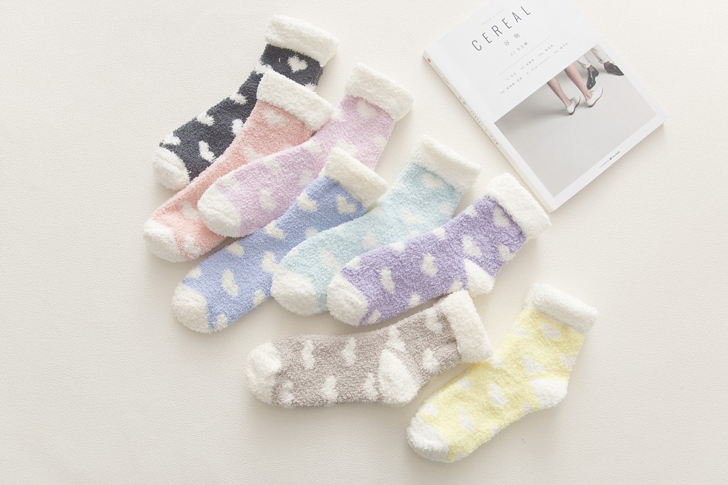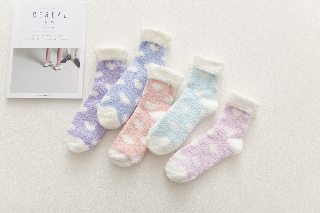 가을과 겨울 새로운 일본 사랑 플립 산호 양털 양말 두꺼운 따뜻한 바닥 양말 수면 양말 여성 양말