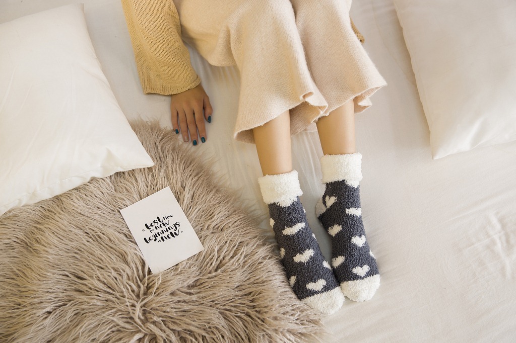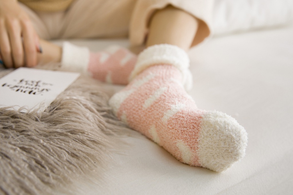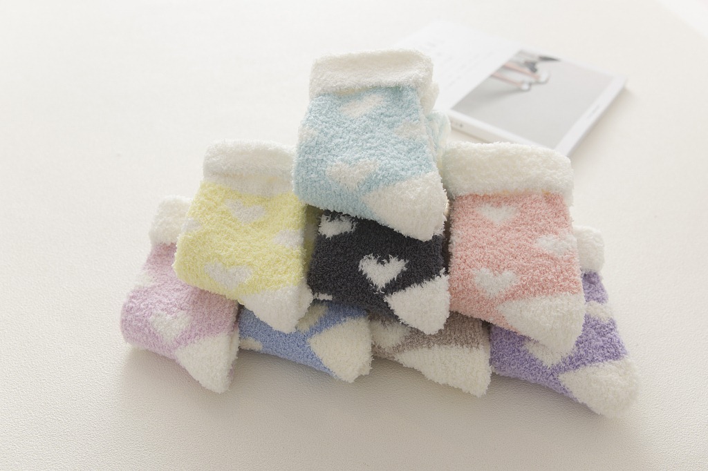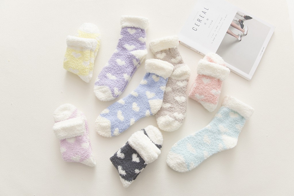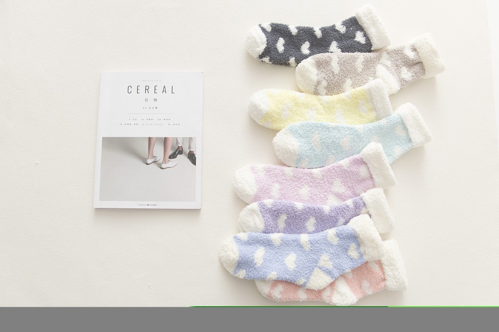 가을과 겨울 새로운 일본 사랑 플립 산호 양털 양말 두꺼운 따뜻한 바닥 양말 수면 양말 여성 양말스토어 가기