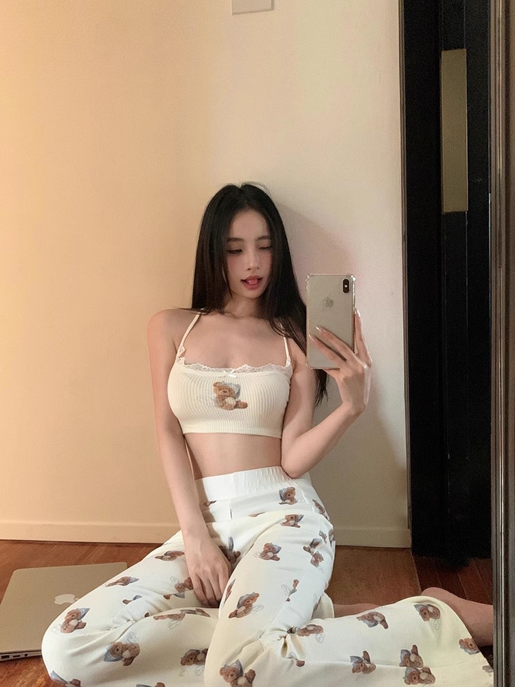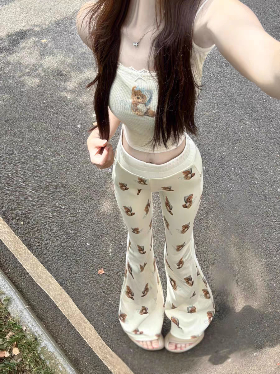 소녀의 순수한 욕망 곰 슬링 가슴 패드 잠옷 여성의 여름 2024 새로운 슬림핏 섹시한 조끼 반바지 홈 옷스토어 가기