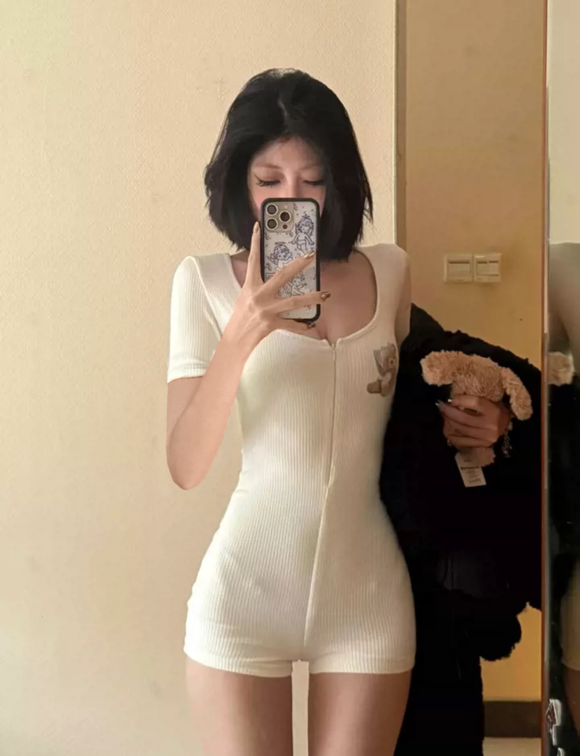 소녀의 순수한 욕망 곰 슬링 가슴 패드 잠옷 여성의 여름 2024 새로운 슬림핏 섹시한 조끼 반바지 홈 옷