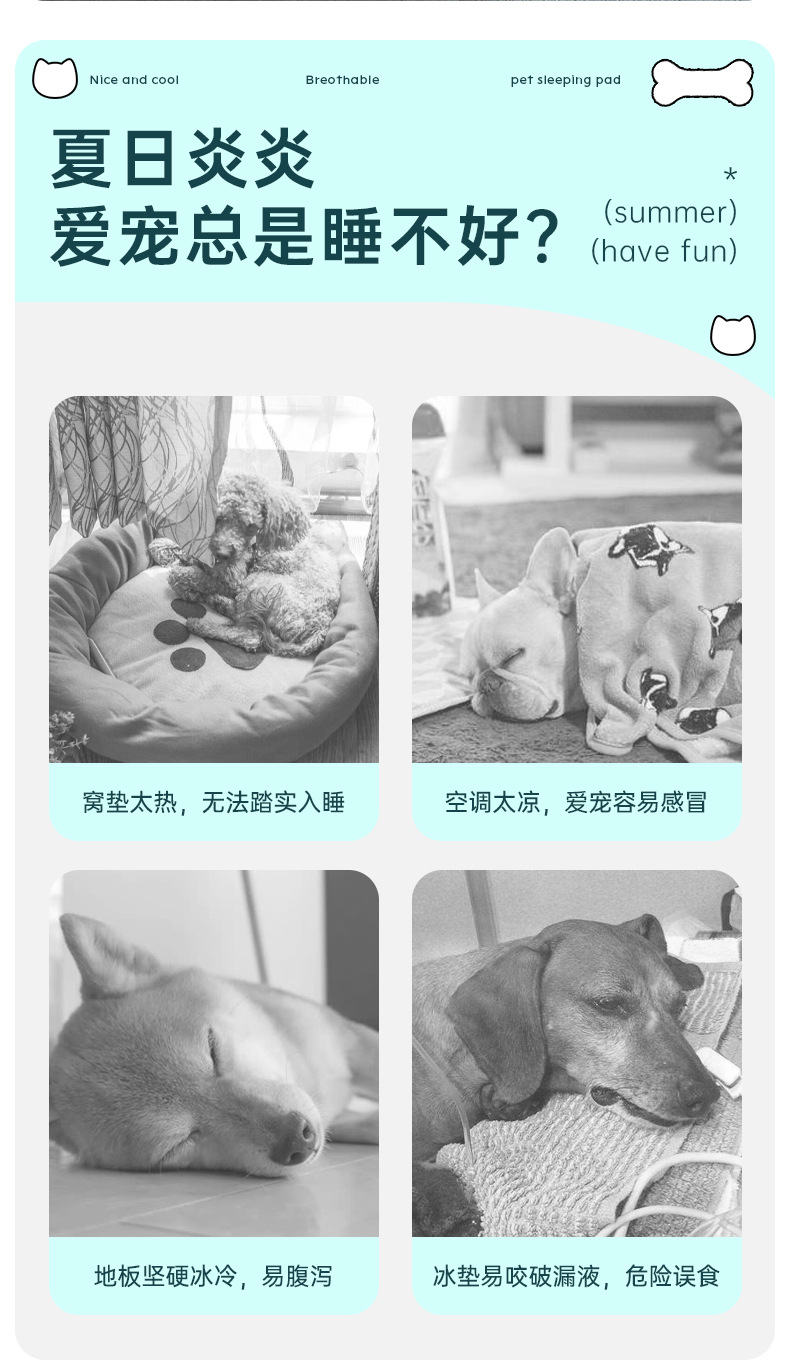 고양이와 개를위한 여름 시원한 개 매트 잠자기 매트 애완 동물 매트 이동식 및 세척 가능한 사육장 국경스토어 가기