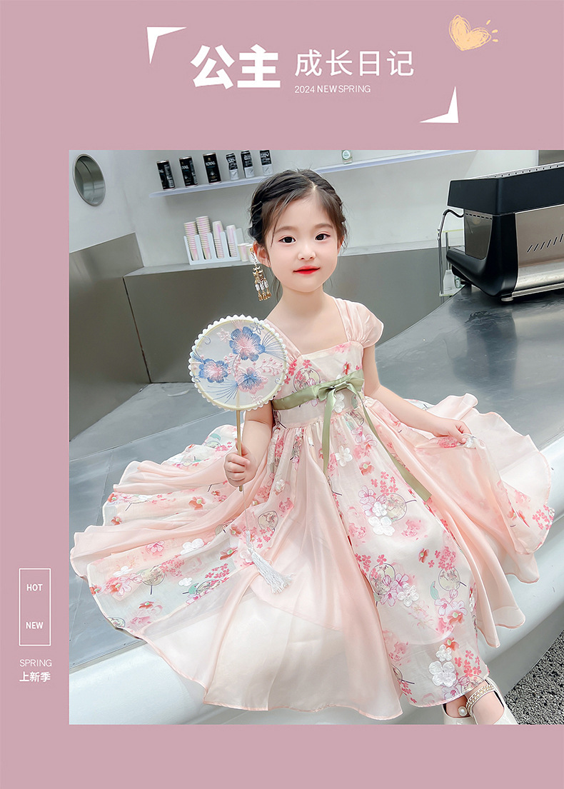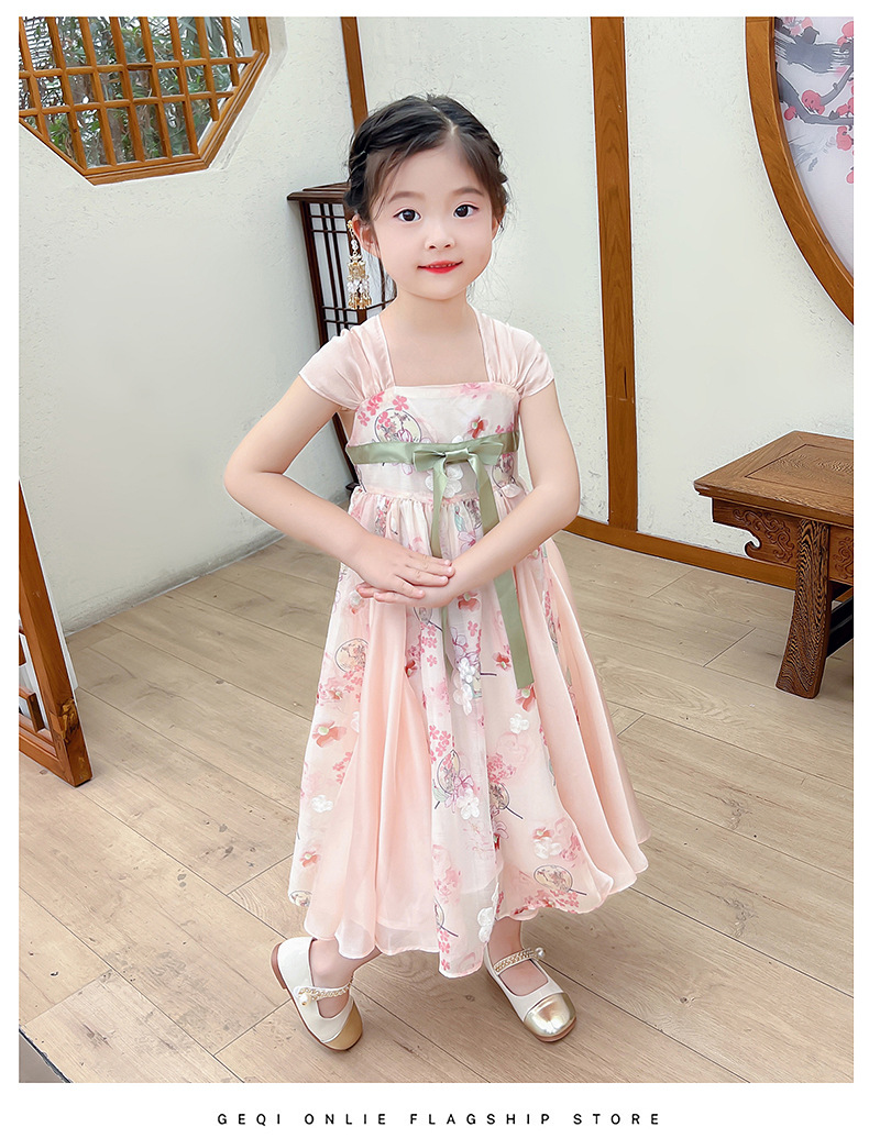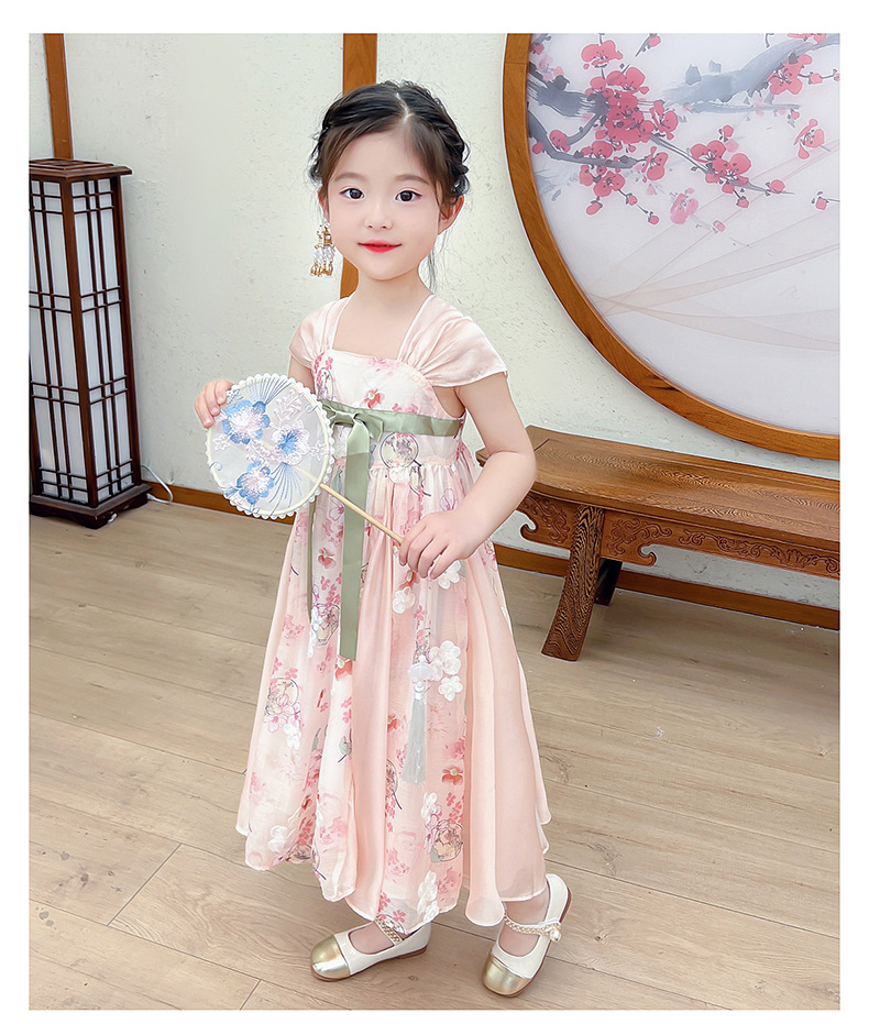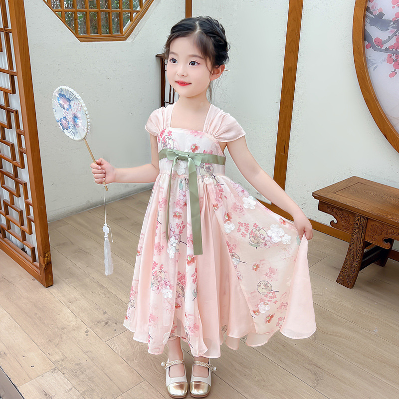 소녀 원피스 여름 원피스 서양식 어린이 슬링 공주 원피스 어린 소녀의 슈퍼 요정 큰 스윙 꽃 골동품 한푸 원피스스토어 가기