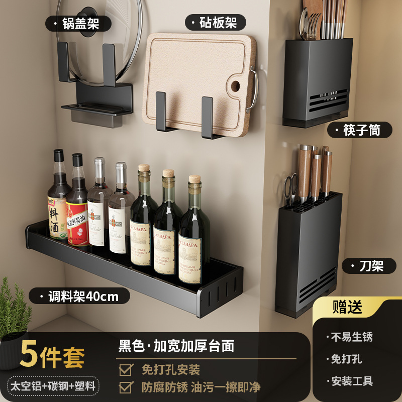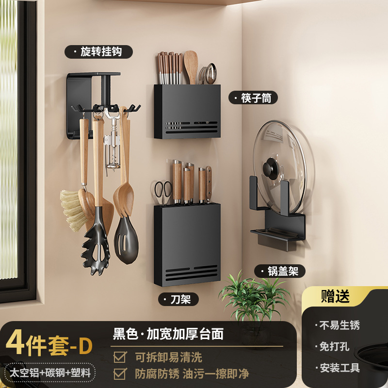 주방 다기능 스토리지 랙 벽걸이 뚫려 있지 않은 매운 랙 가정용 젓가락 나이프, 냄비 커버 마무리 스토리지 랙
