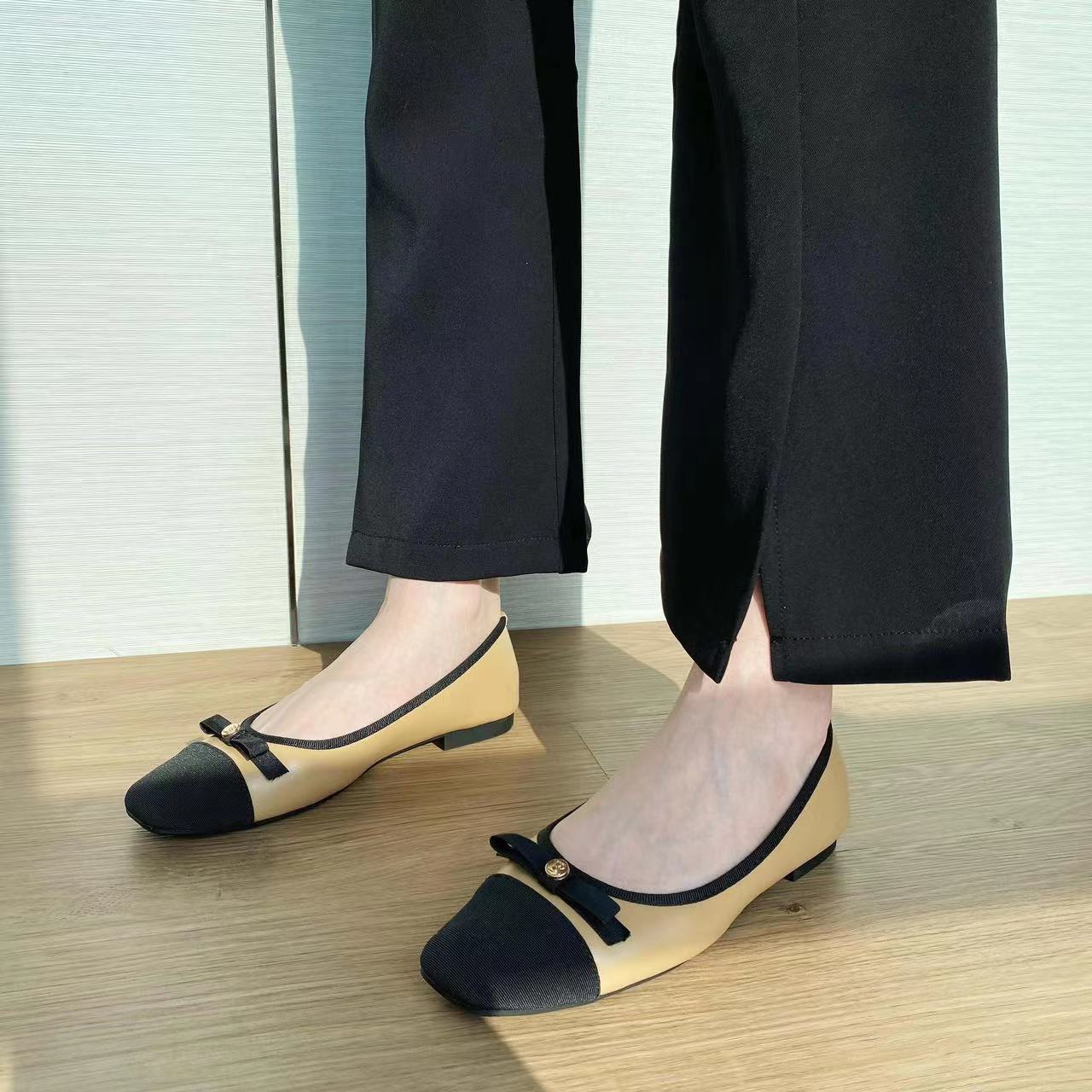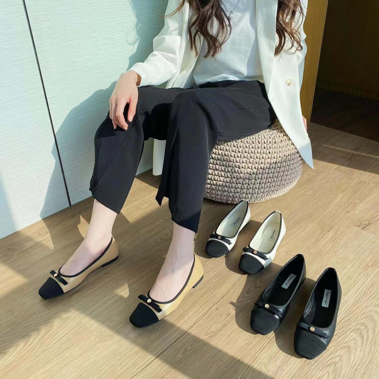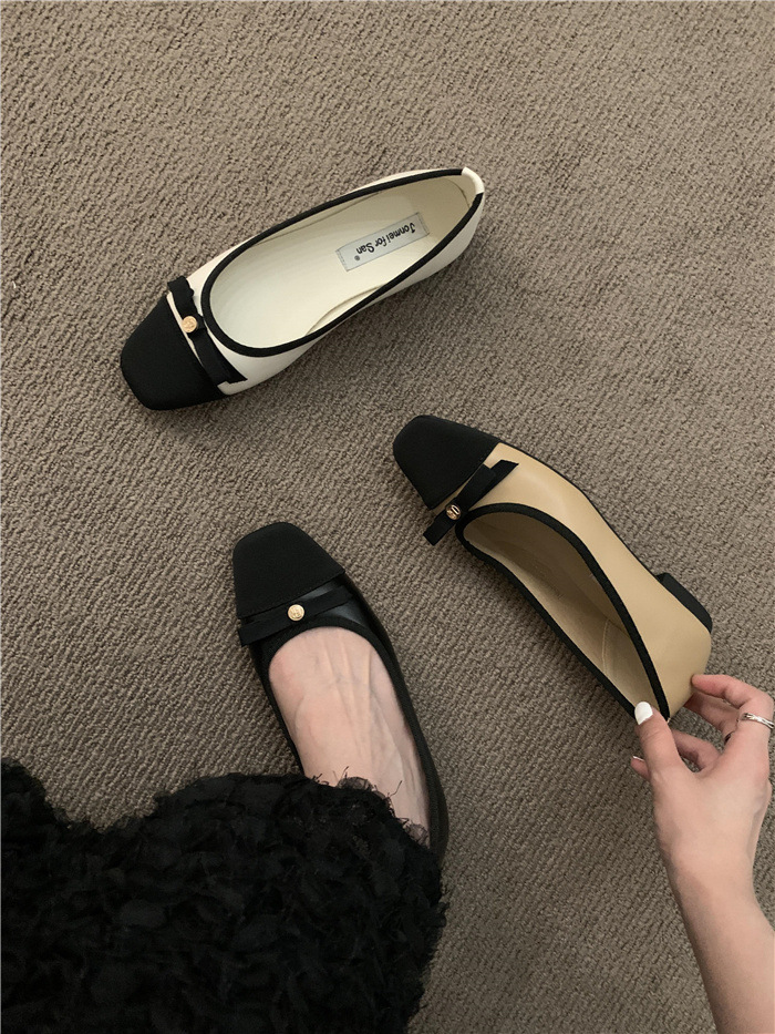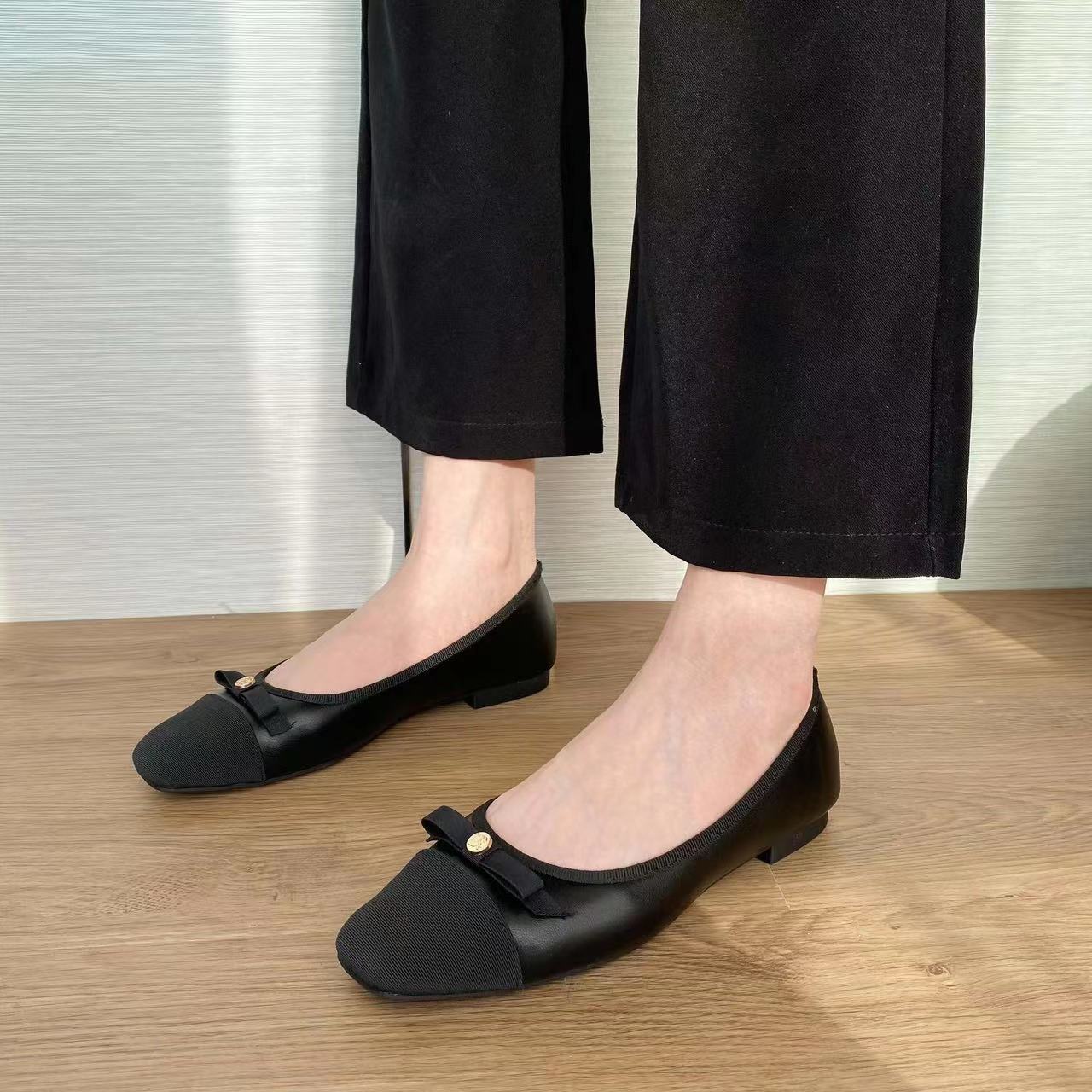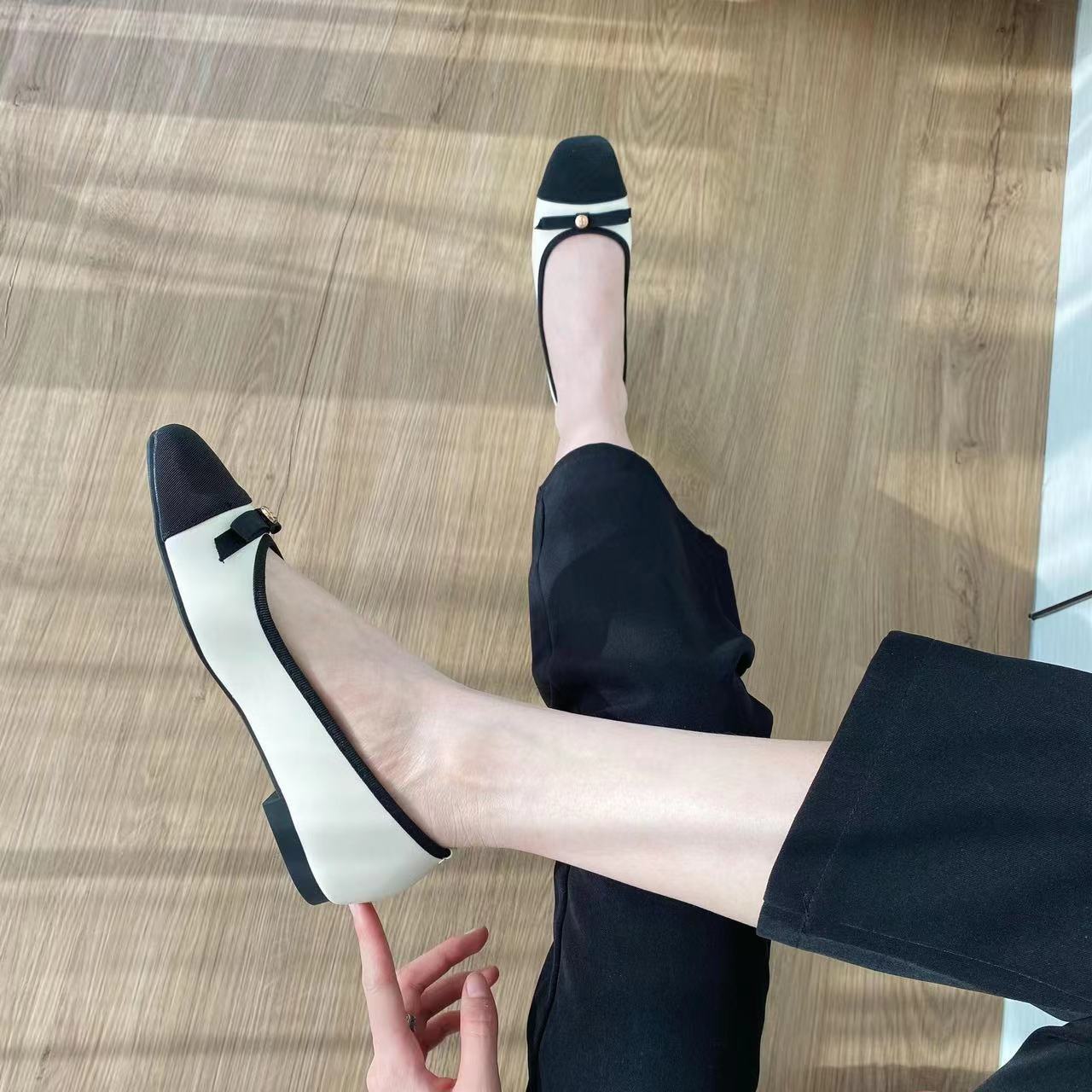2024 빈티지 우아한 샤넬 스타일 컬러 매칭 페어리 젠틀 보우 프렌치 싱글 레이어 신발 여성용 소프트 하단 빈 신발스토어 가기