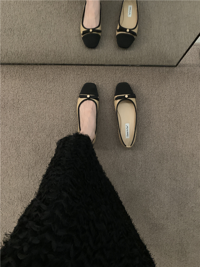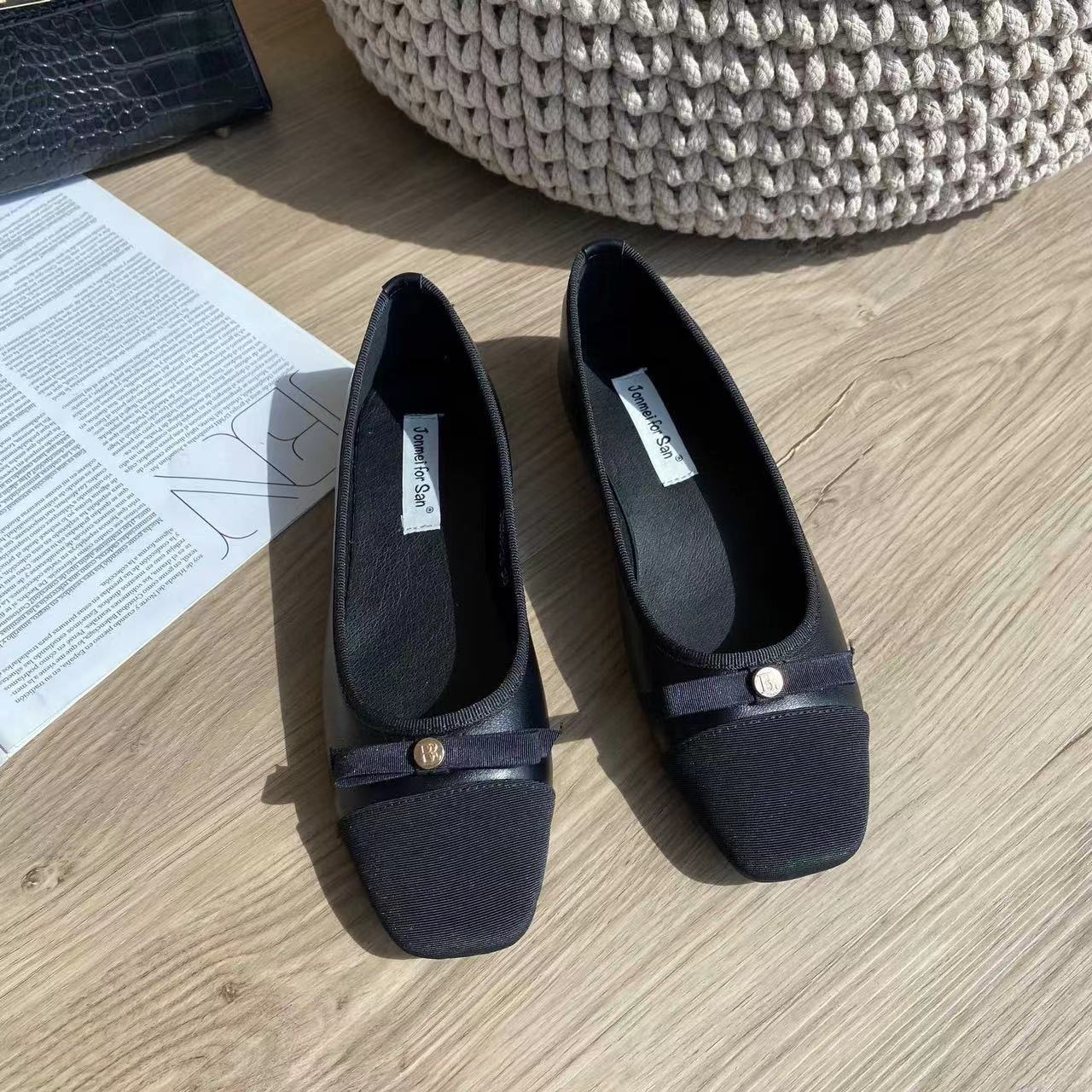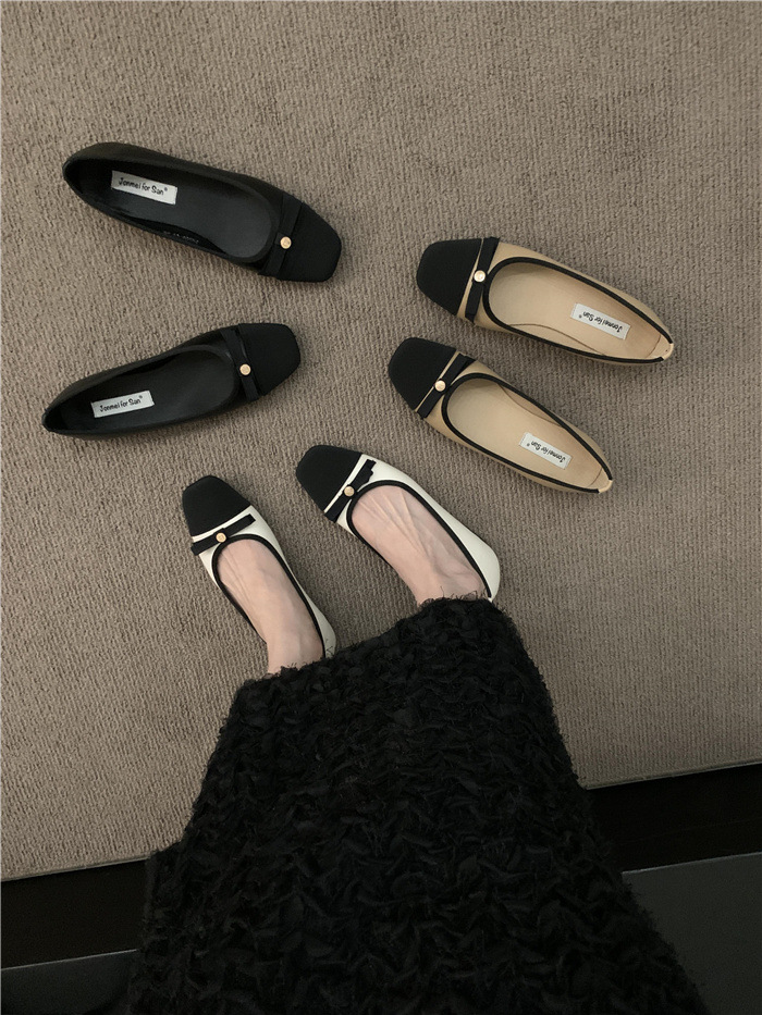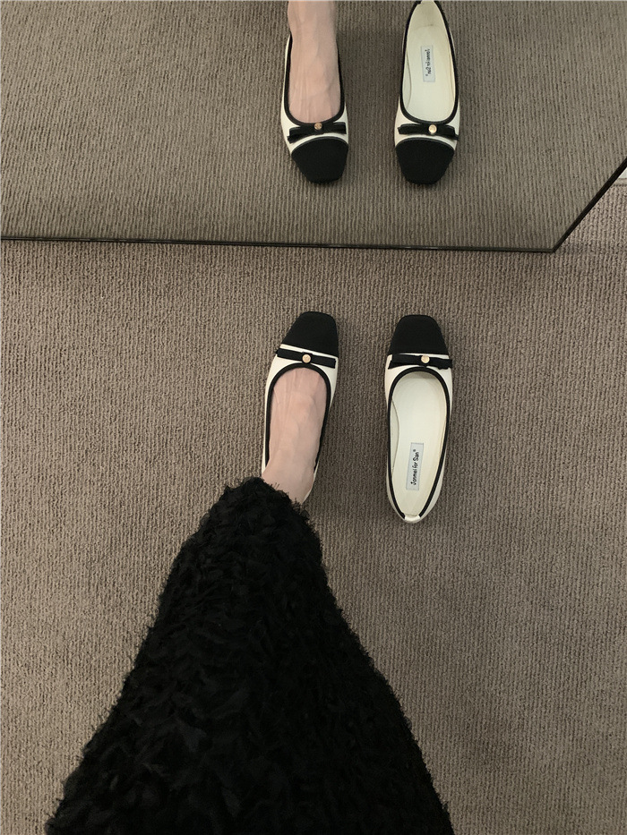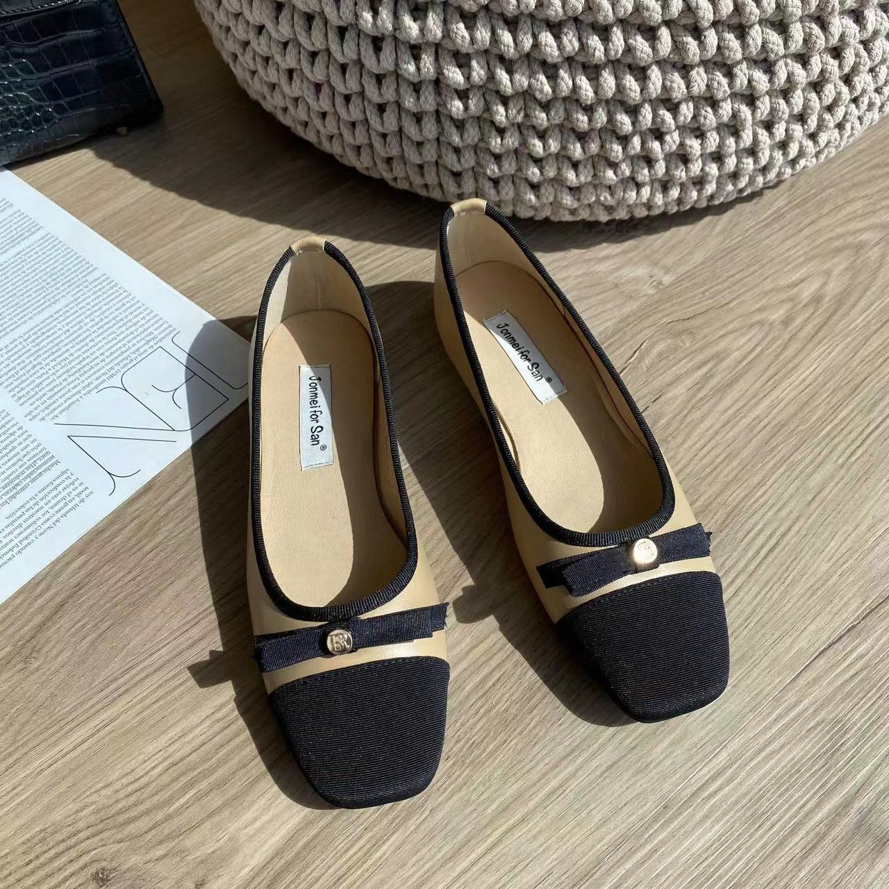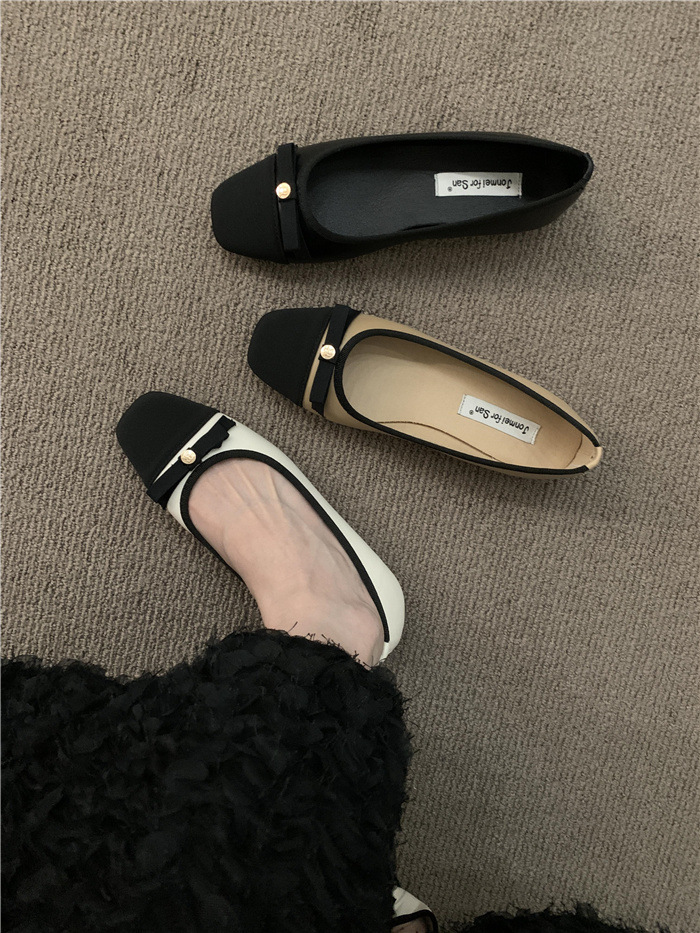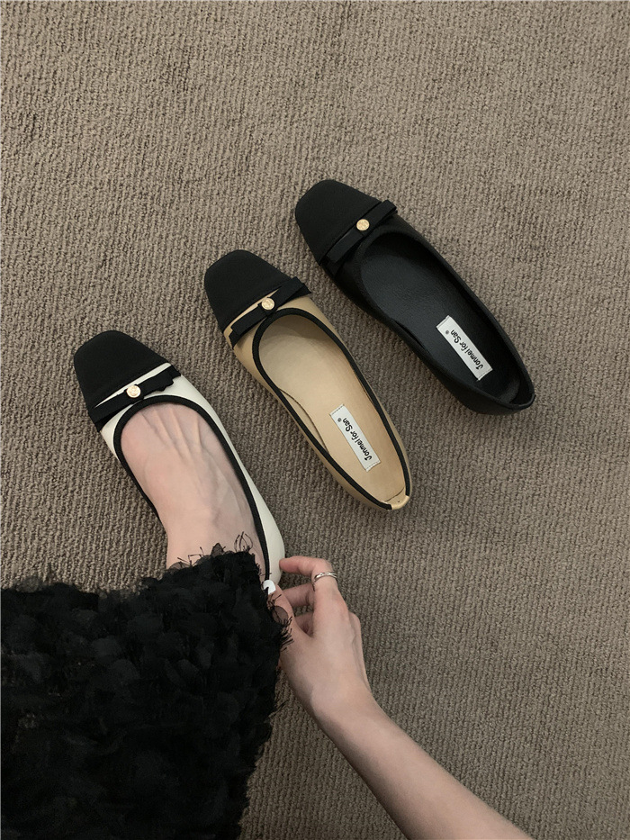 2024 빈티지 우아한 샤넬 스타일 컬러 매칭 페어리 젠틀 보우 프렌치 싱글 레이어 신발 여성용 소프트 하단 빈 신발스토어 가기