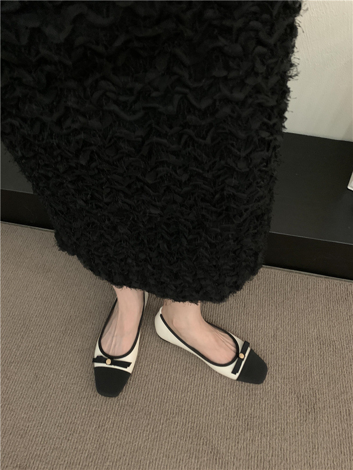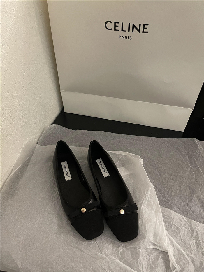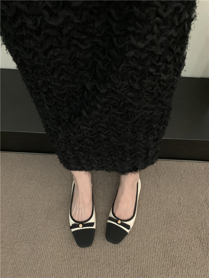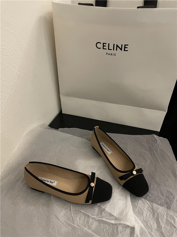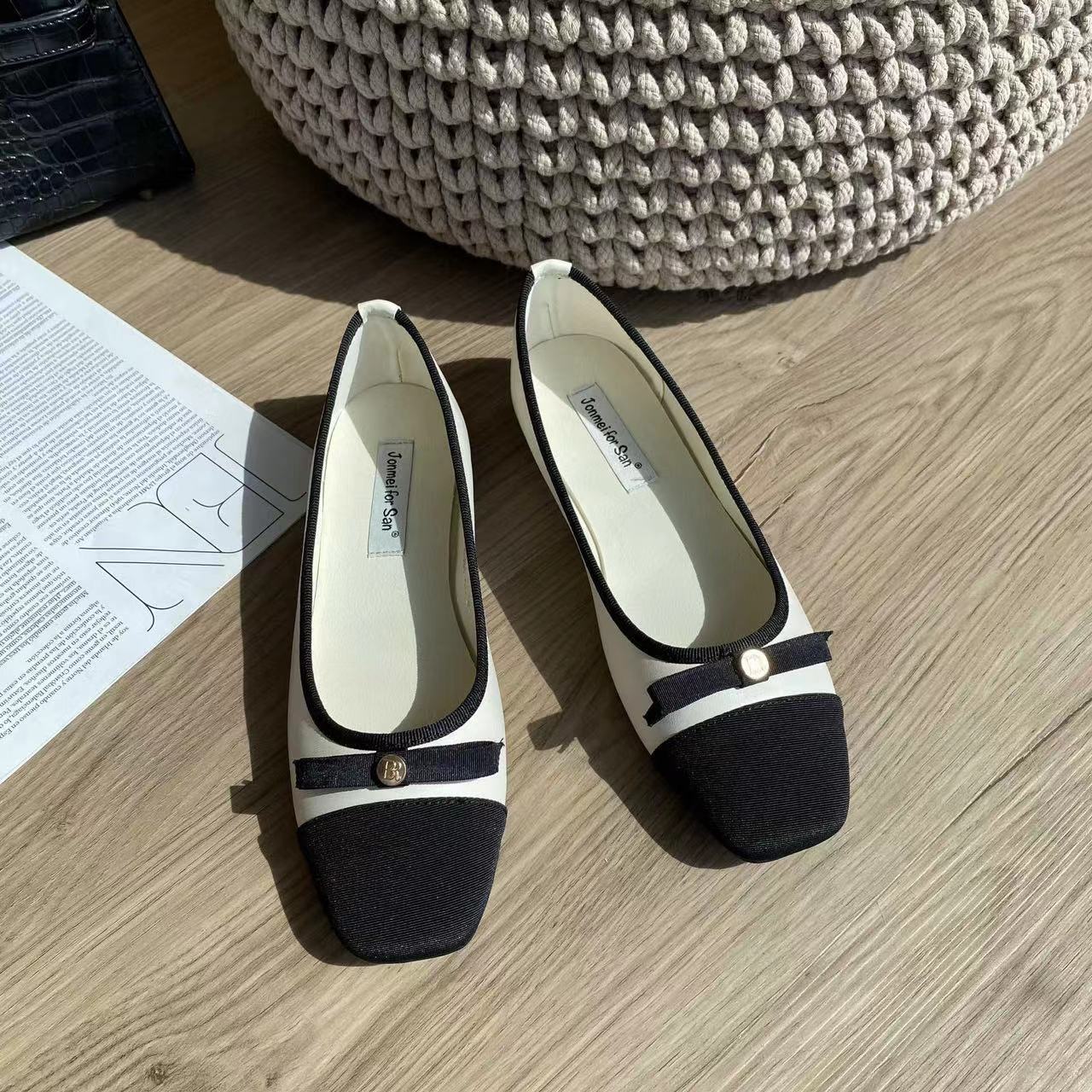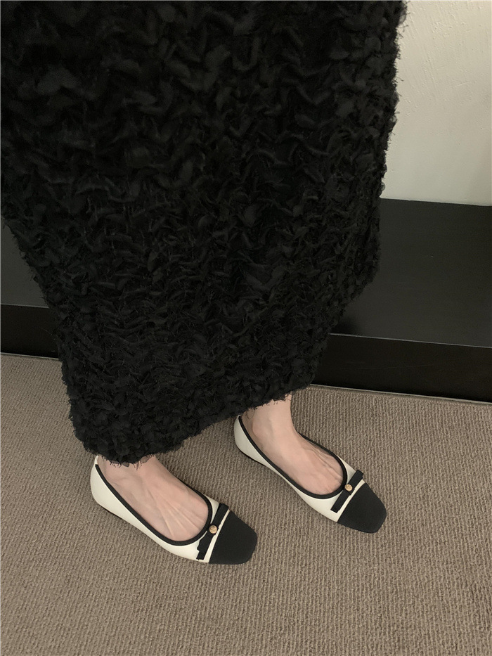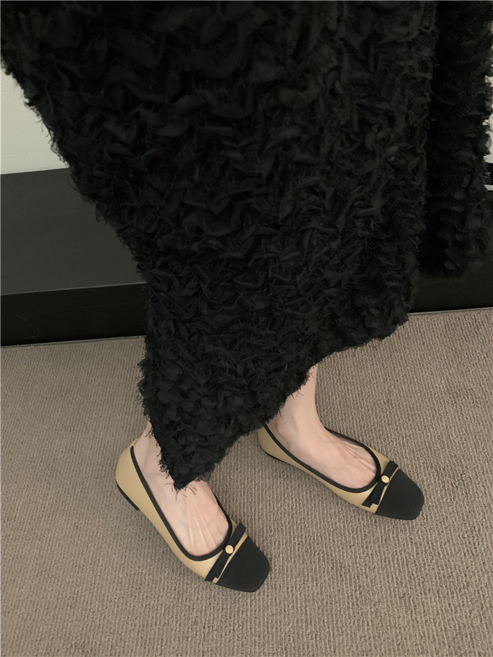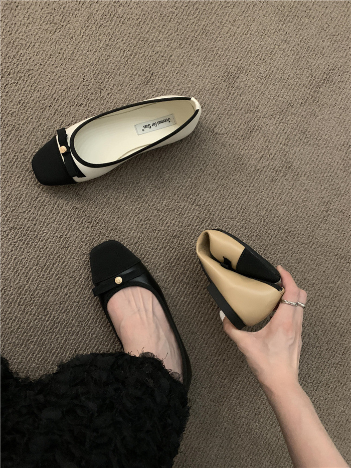 2024 빈티지 우아한 샤넬 스타일 컬러 매칭 페어리 젠틀 보우 프렌치 싱글 레이어 신발 여성용 소프트 하단 빈 신발스토어 가기