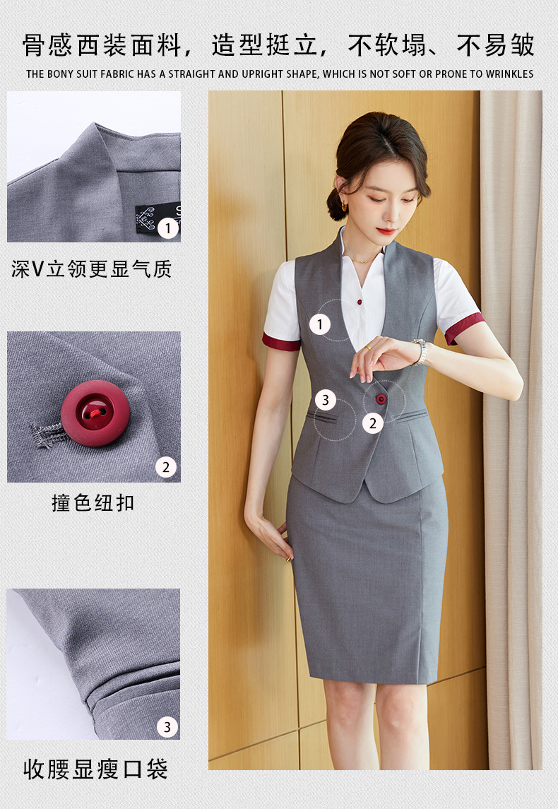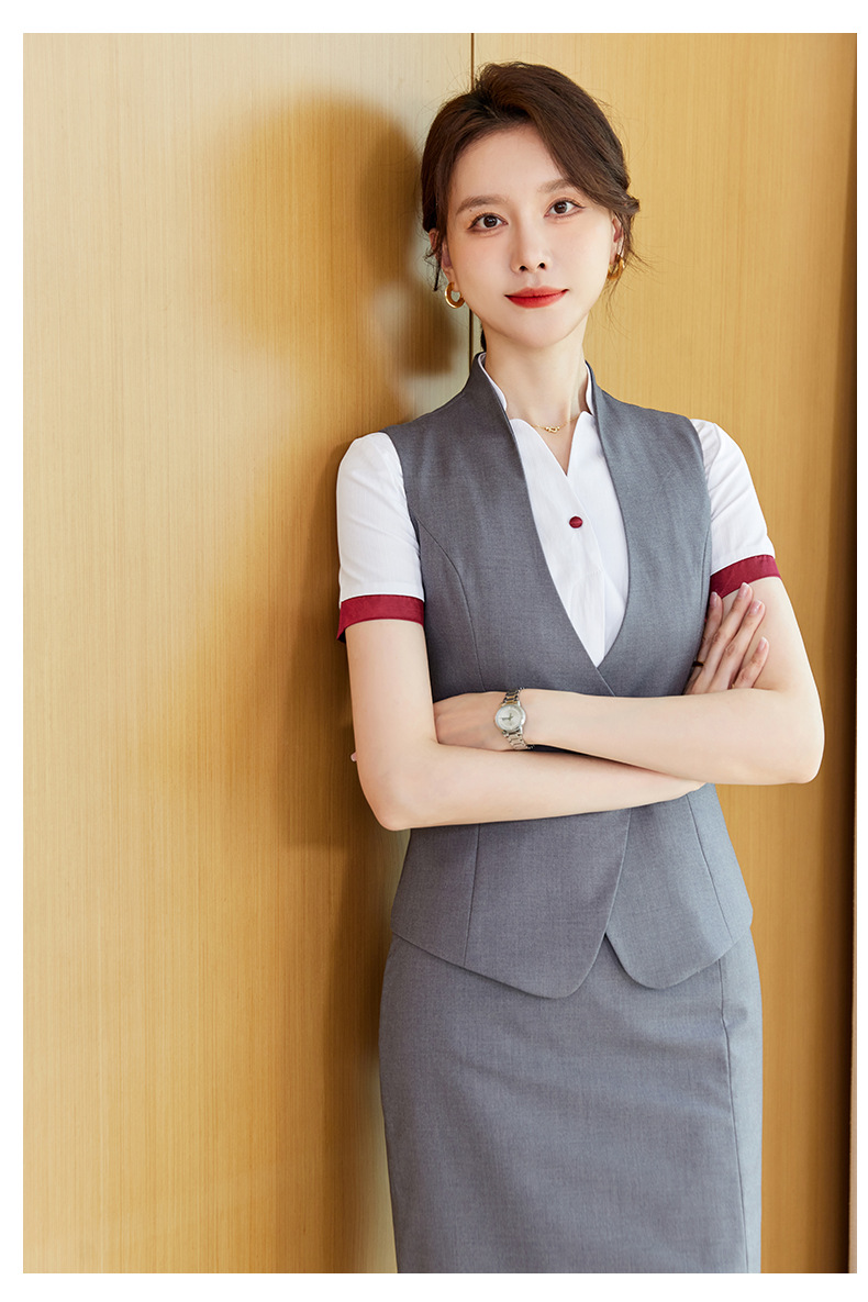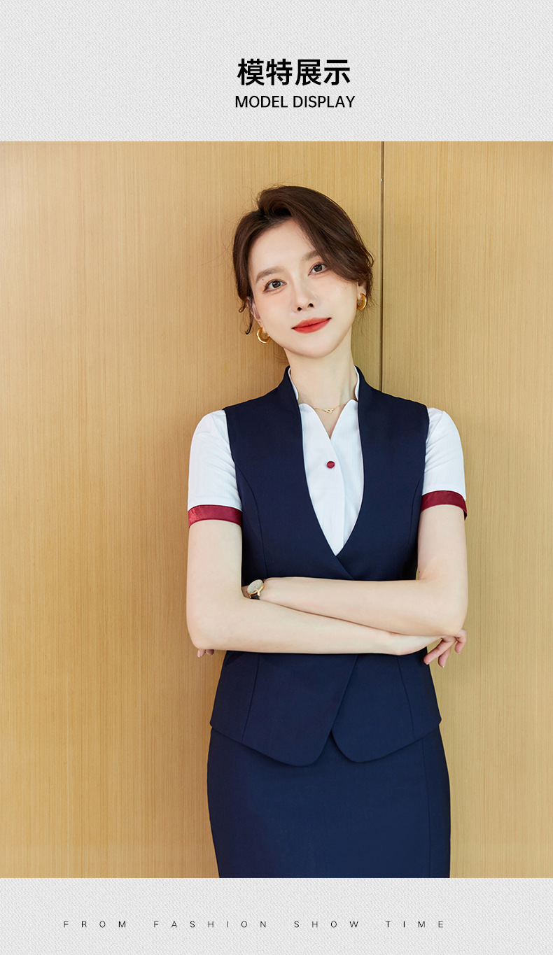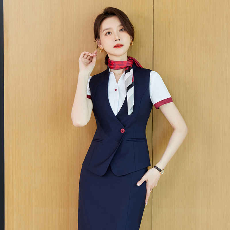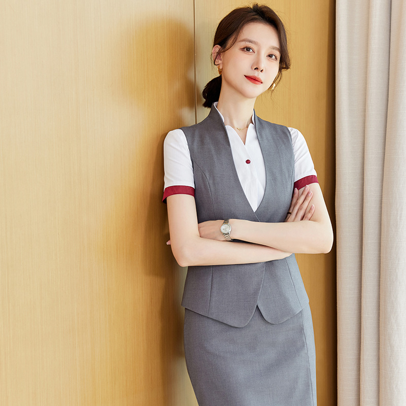 프론트 데스크 고객 서비스 쇼핑 가이드 작업복 전문 조끼 셔츠 세트 여성 여름 하이 엔드 의료 미용 구강 의료 가이드 툴링스토어 가기