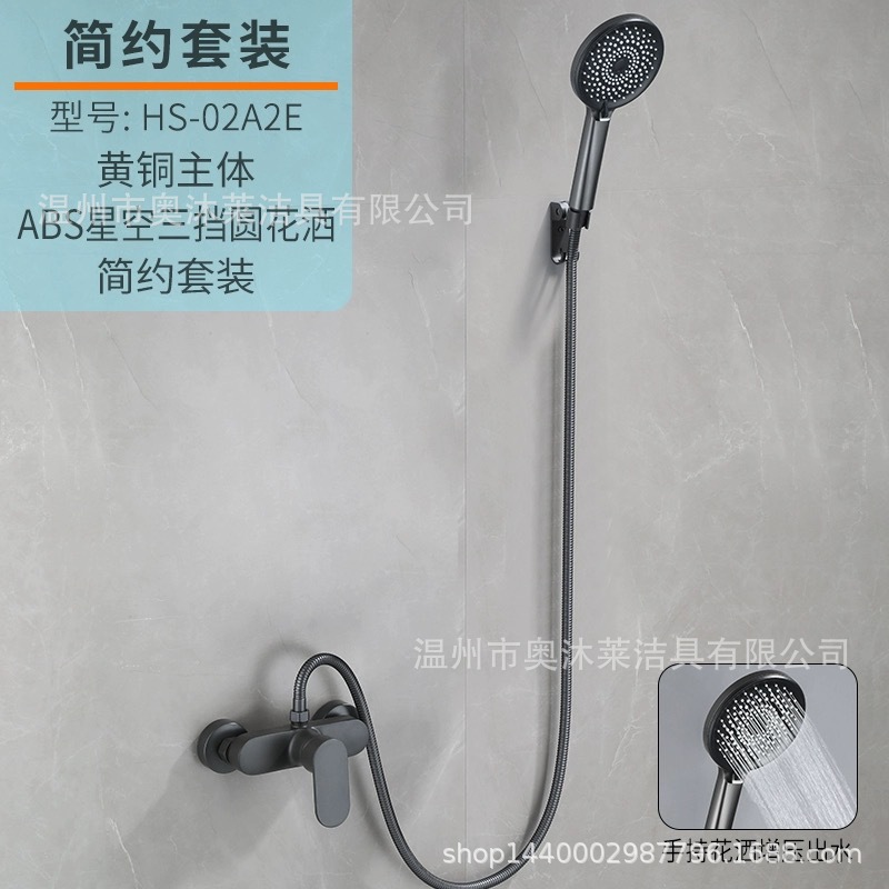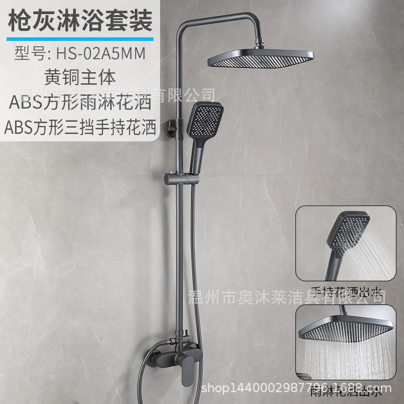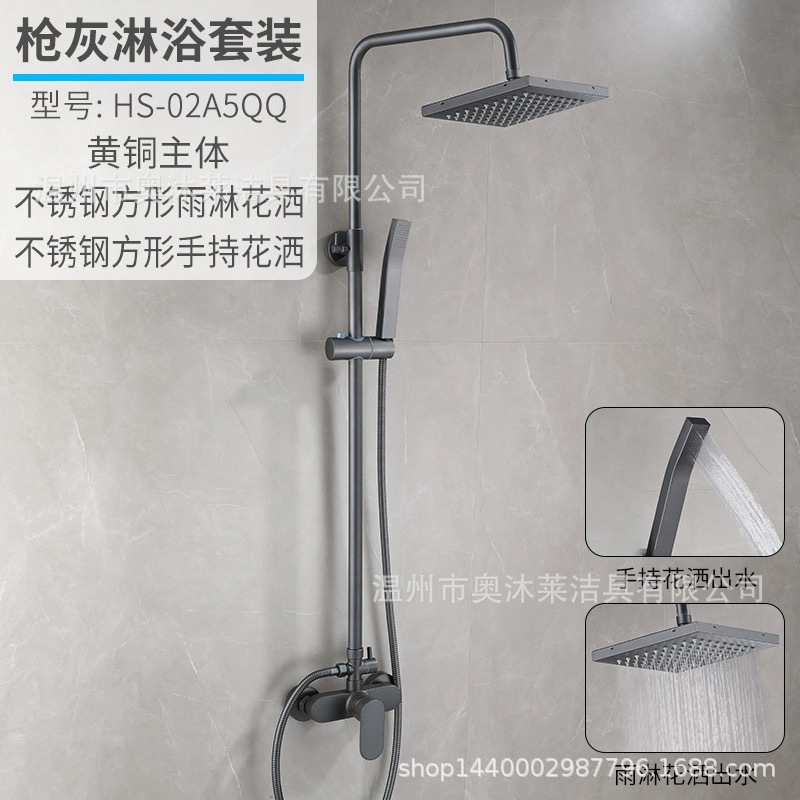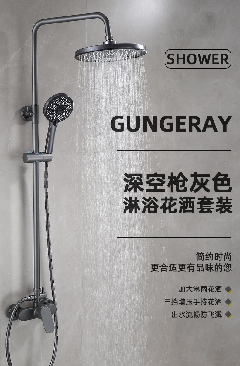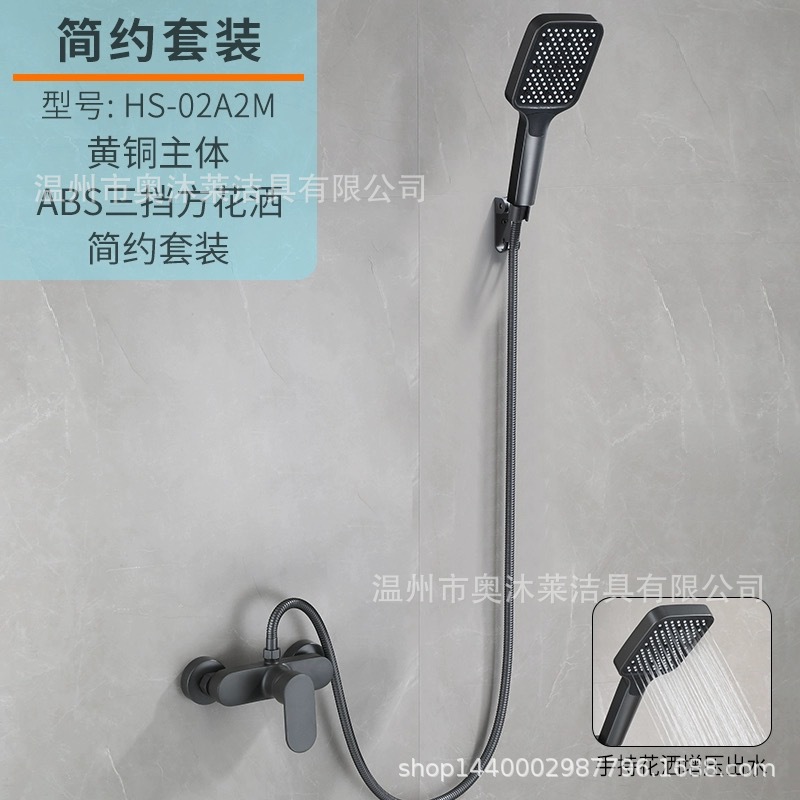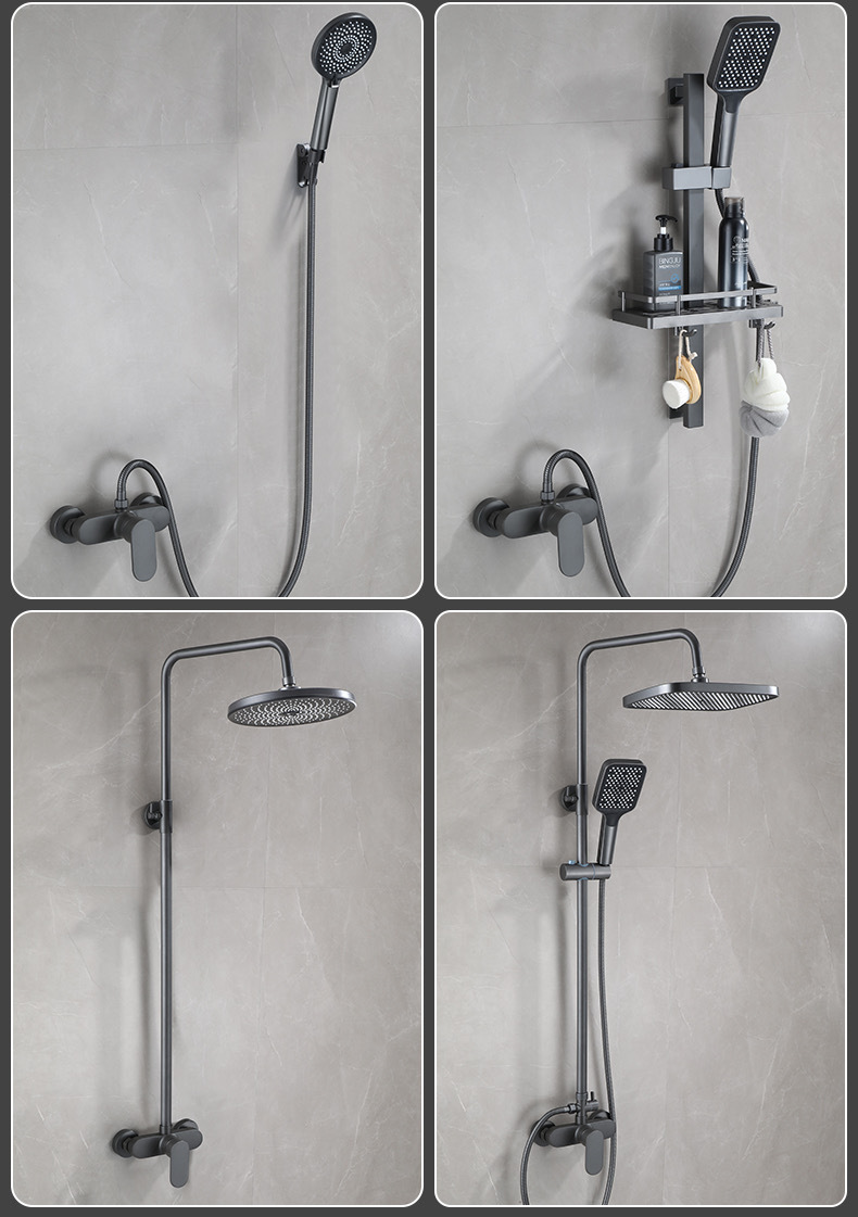 총 회색 샤워 수도꼭지 샤워 헤드 세트 샤워 헤드 모든 구리 욕실 온수 및 냉간 혼합 밸브 간단한 욕조 수도꼭지스토어 가기