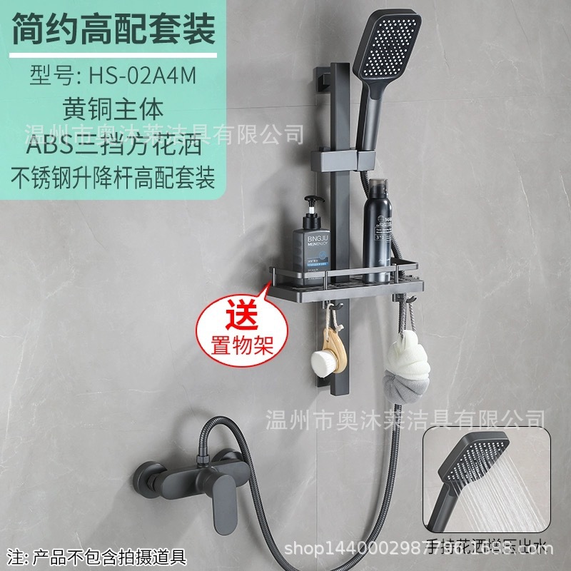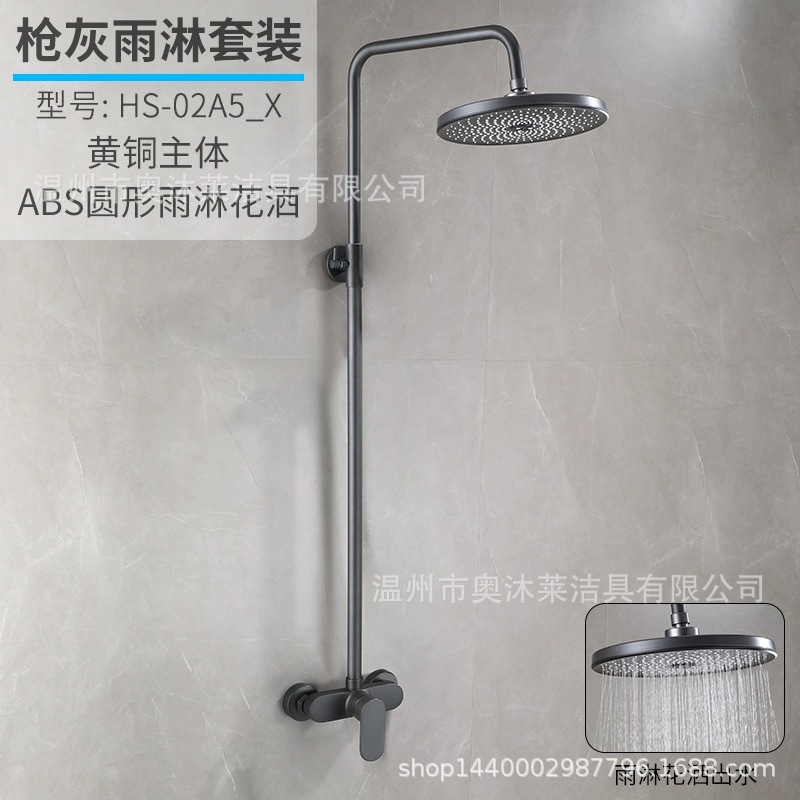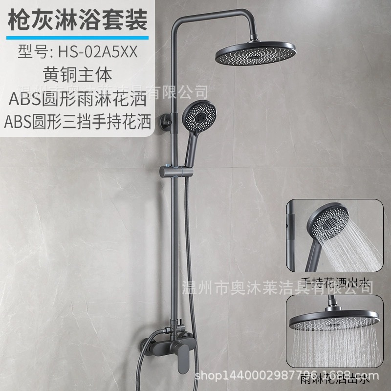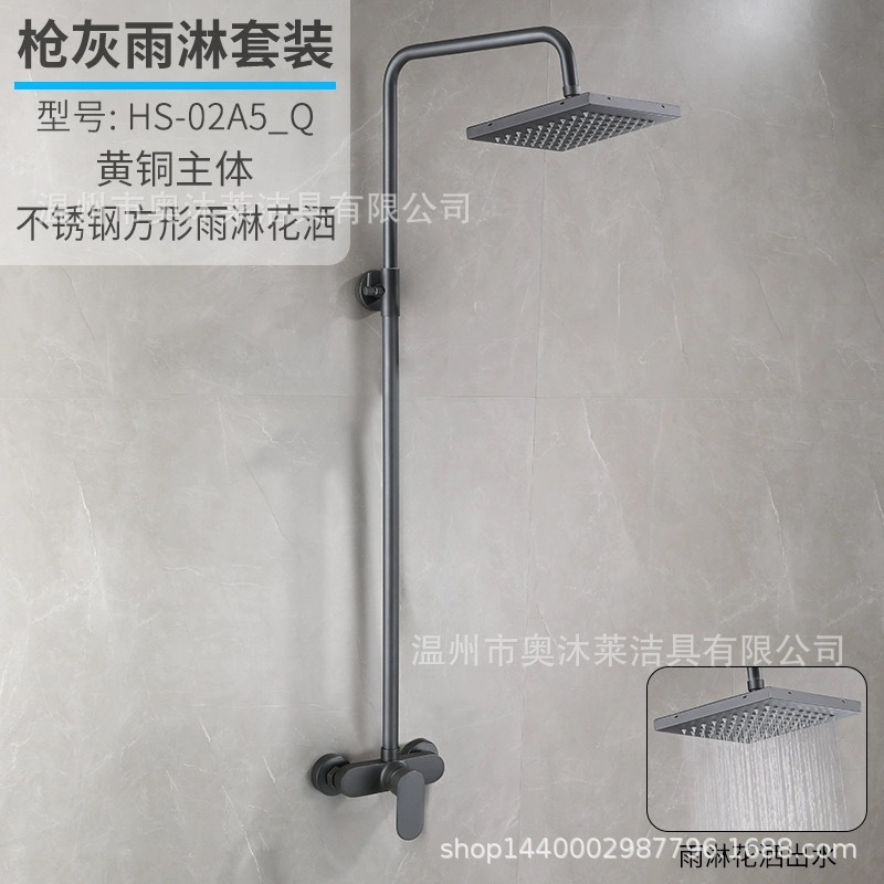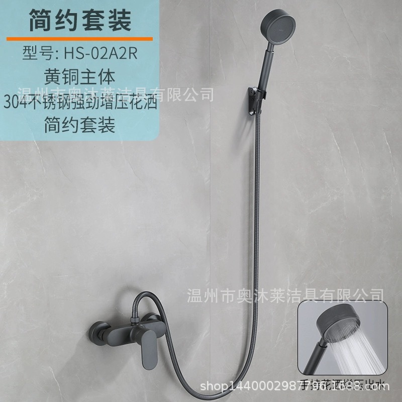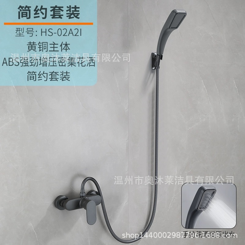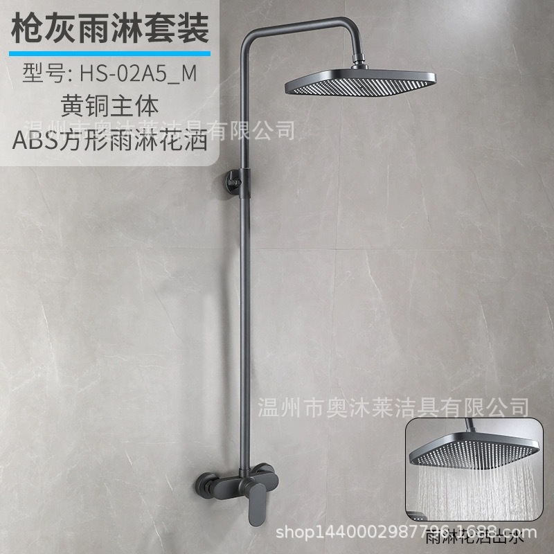 총 회색 샤워 수도꼭지 샤워 헤드 세트 샤워 헤드 모든 구리 욕실 온수 및 냉간 혼합 밸브 간단한 욕조 수도꼭지스토어 가기