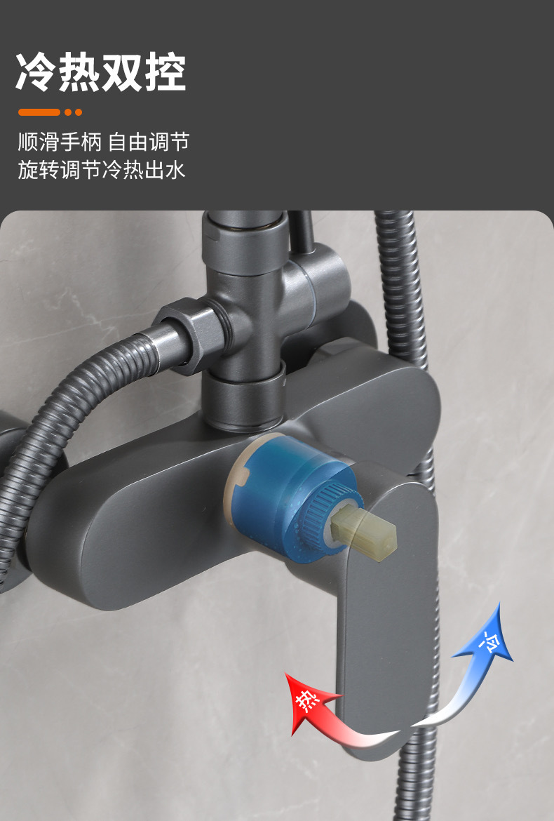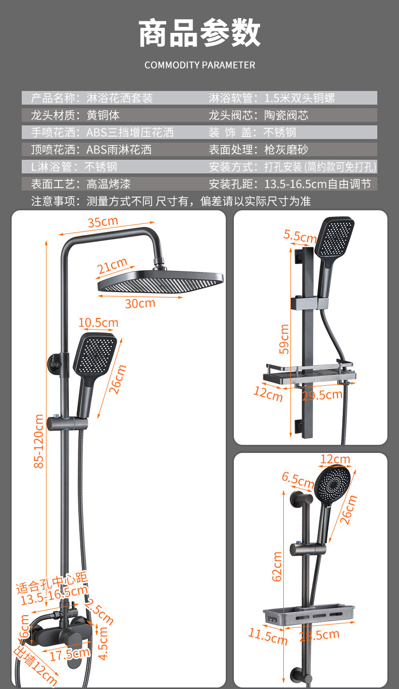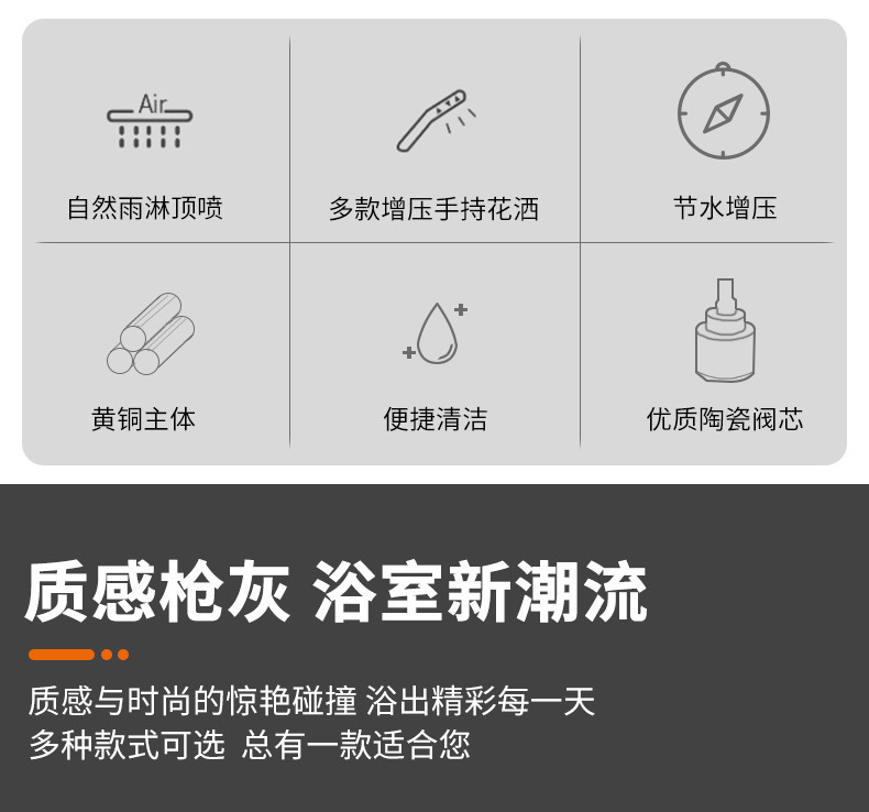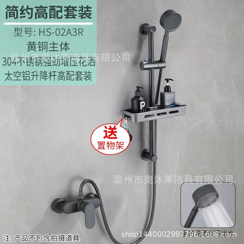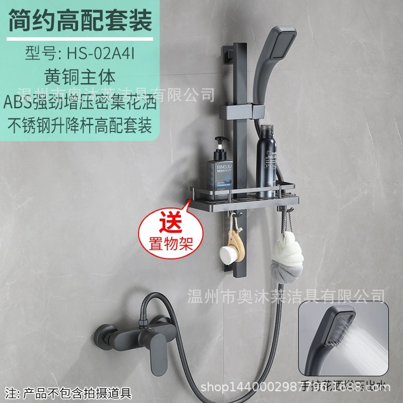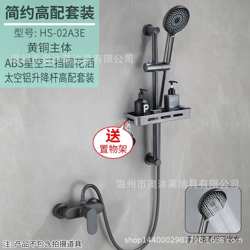 총 회색 샤워 수도꼭지 샤워 헤드 세트 샤워 헤드 모든 구리 욕실 온수 및 냉간 혼합 밸브 간단한 욕조 수도꼭지스토어 가기
