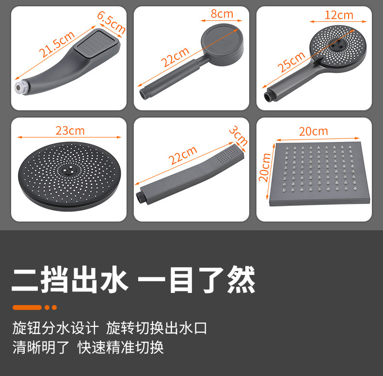 총 회색 샤워 수도꼭지 샤워 헤드 세트 샤워 헤드 모든 구리 욕실 온수 및 냉간 혼합 밸브 간단한 욕조 수도꼭지