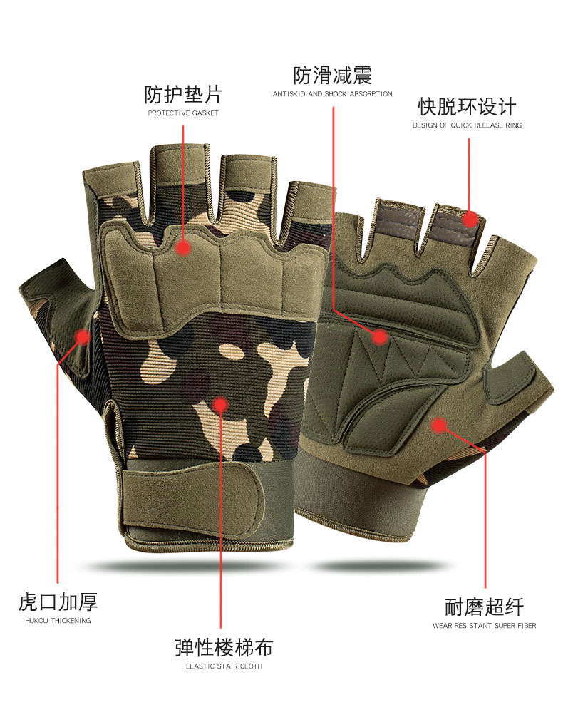 반 손가락 전술 장갑 미끄럼 방지 착용 방지 통기성 사이클링 장갑 어린이 남녀 야외 스포츠 미끄럼 방지 전술 보호