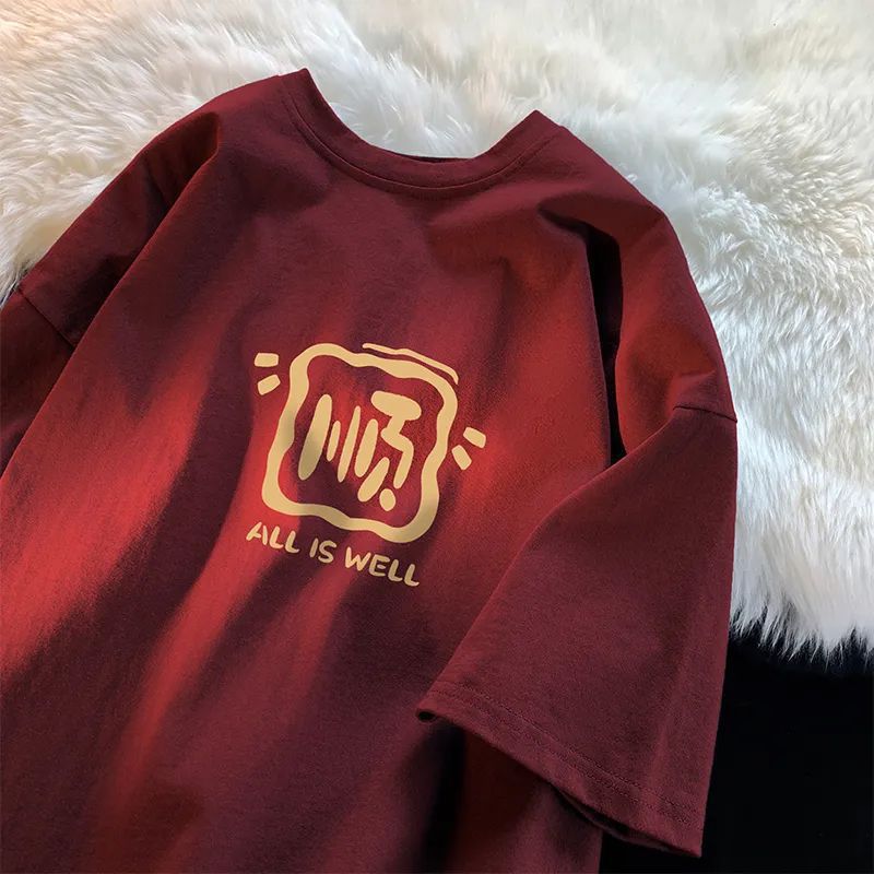 [엄격한 선택] 면 반소매 티셔츠 남성용 210g 빨간 티셔츠 남성용 트렌디 한 여름 헤비 코튼 반팔 도매스토어 가기