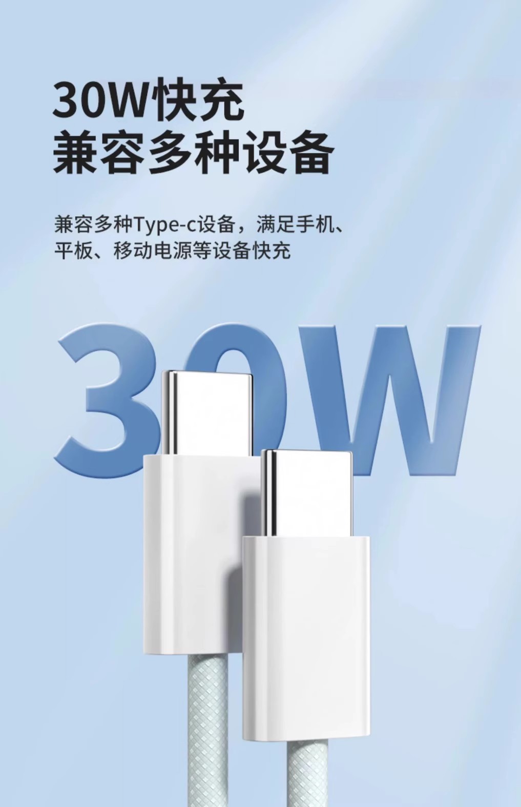 애플 iPhone15 데이터 케이블 30WPD 빠른 충전 애플 15pro 휴대 전화 충전 케이블에 적합한 더블 Typec 포트