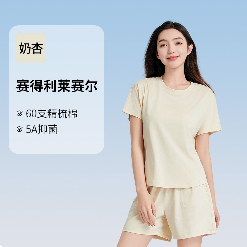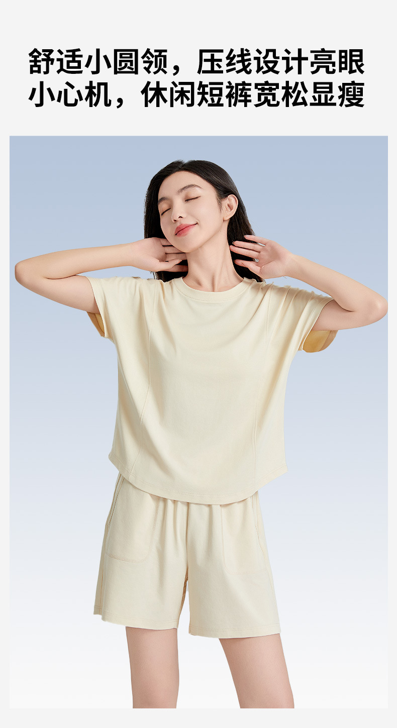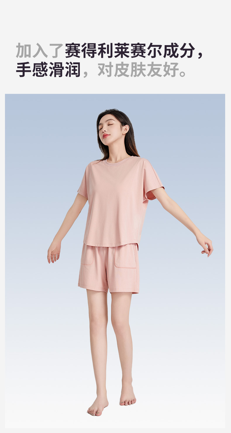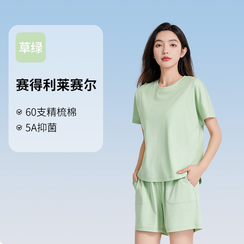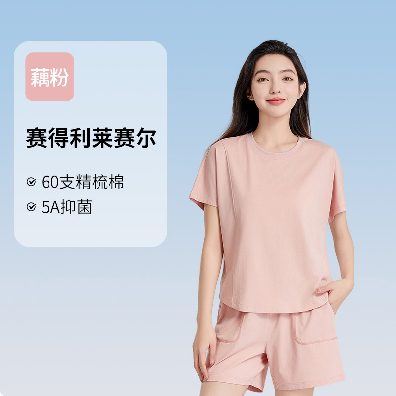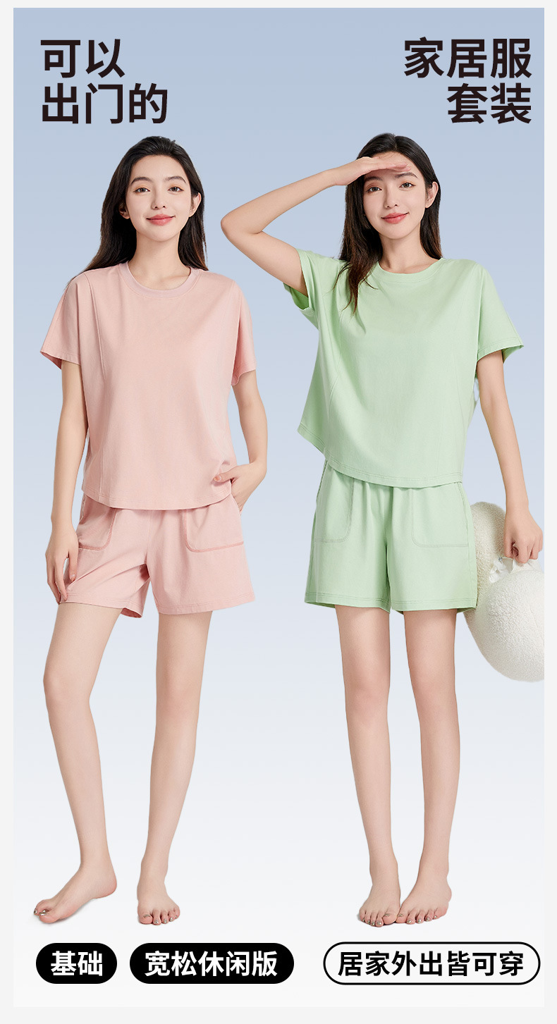 [피부친화면] 여자 홈옷 여름 반팔 반바지 세트 하이 엔드 아웃웨어 라운드 넥 파자마스토어 가기