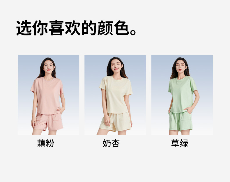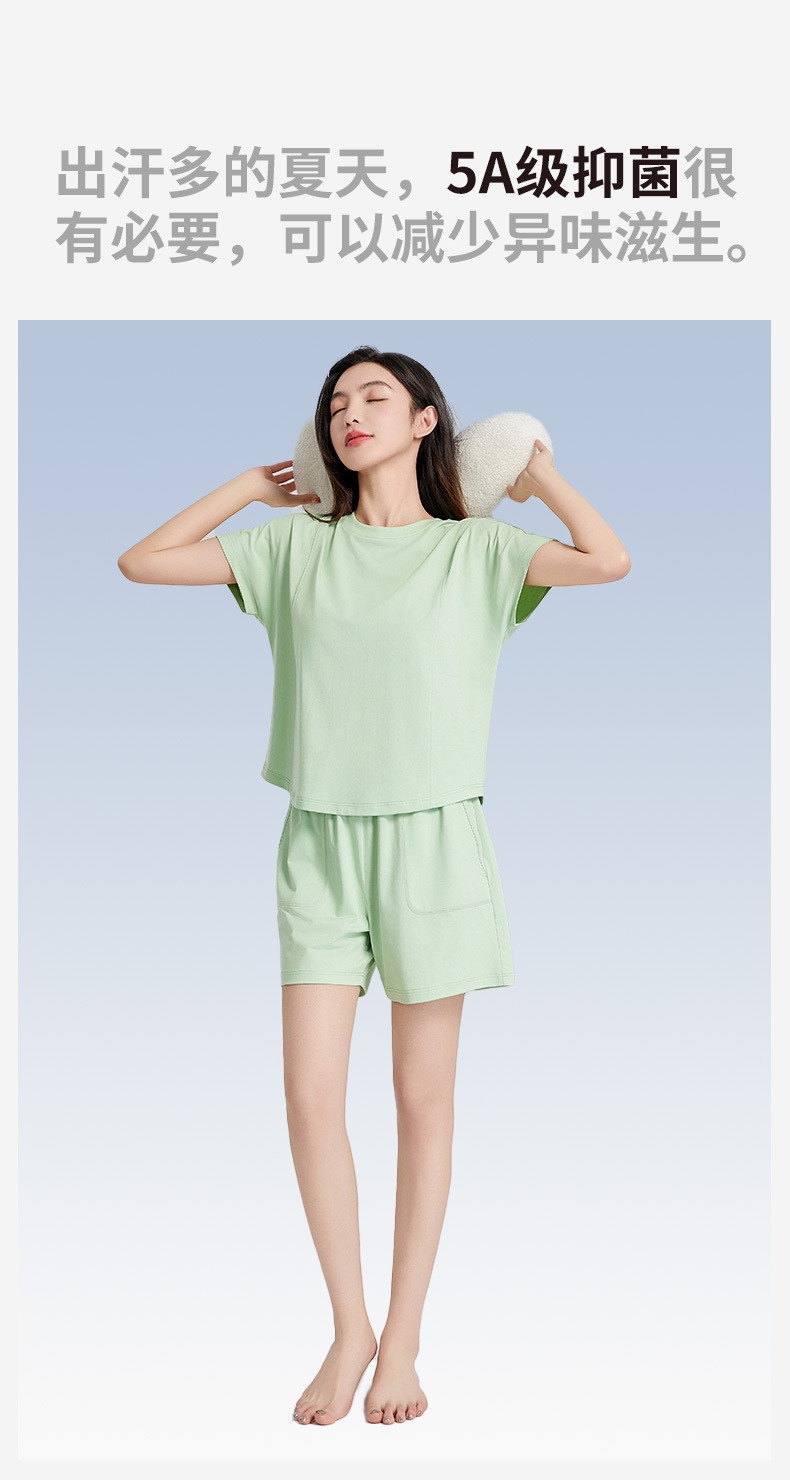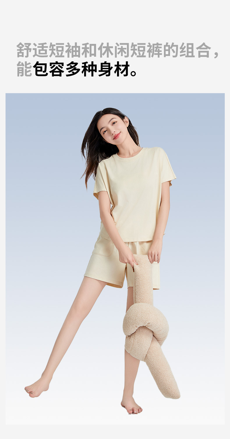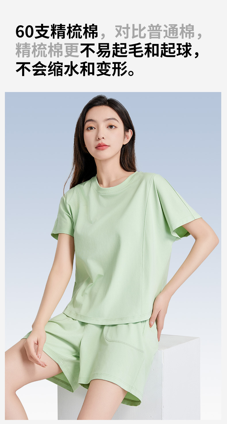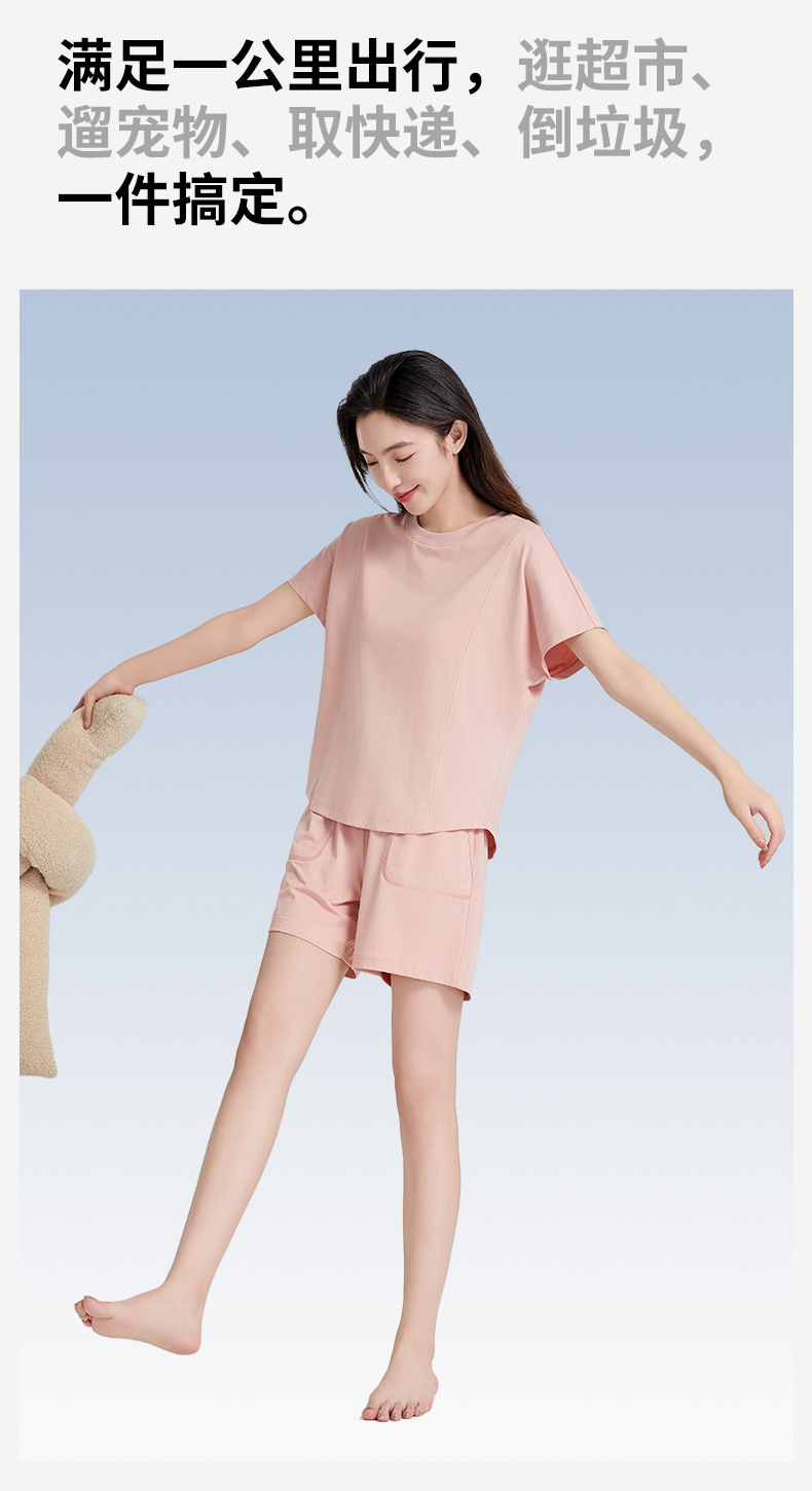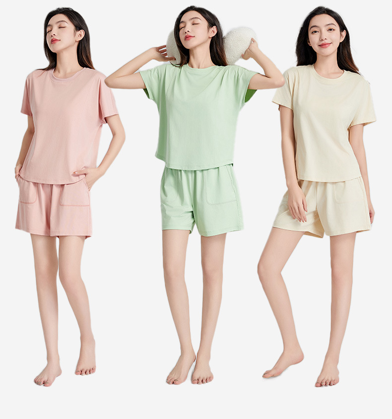 [피부친화면] 여자 홈옷 여름 반팔 반바지 세트 하이 엔드 아웃웨어 라운드 넥 파자마스토어 가기