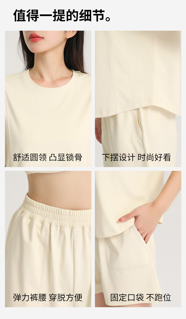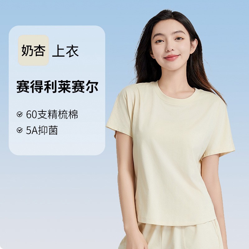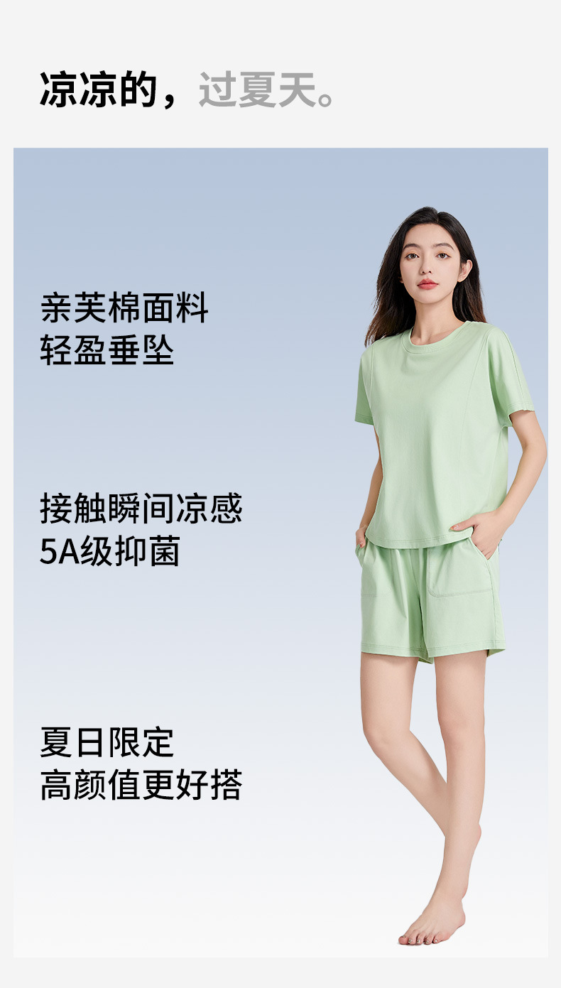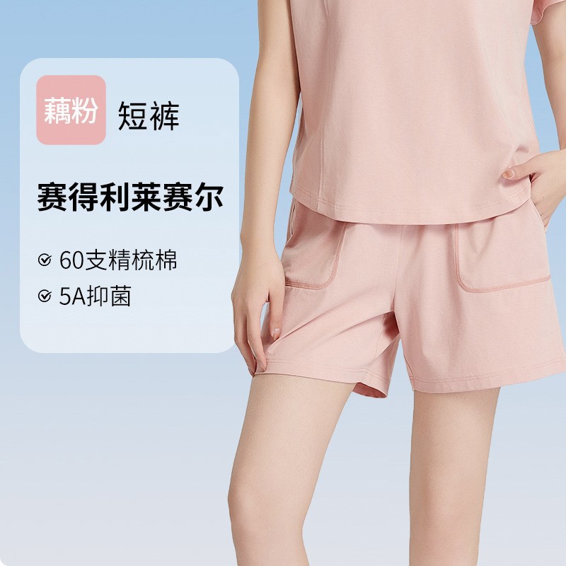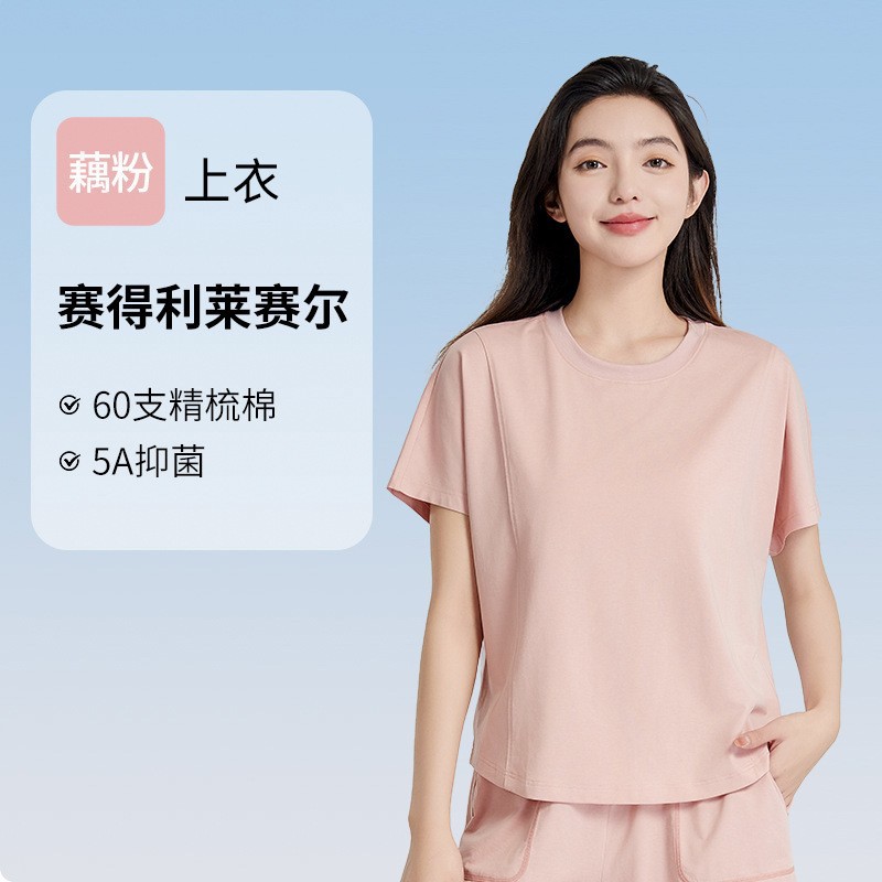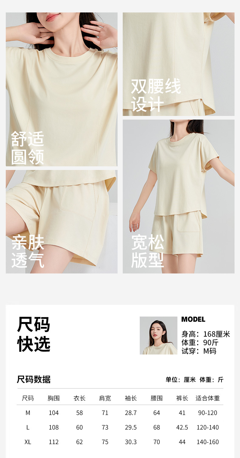 [피부친화면] 여자 홈옷 여름 반팔 반바지 세트 하이 엔드 아웃웨어 라운드 넥 파자마스토어 가기