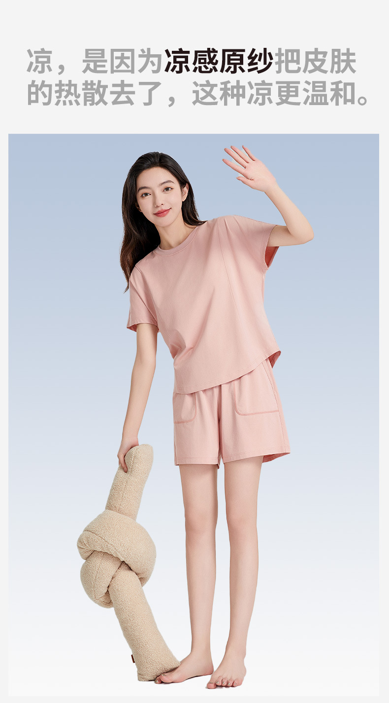 [피부친화면] 여자 홈옷 여름 반팔 반바지 세트 하이 엔드 아웃웨어 라운드 넥 파자마