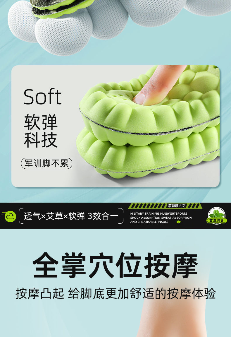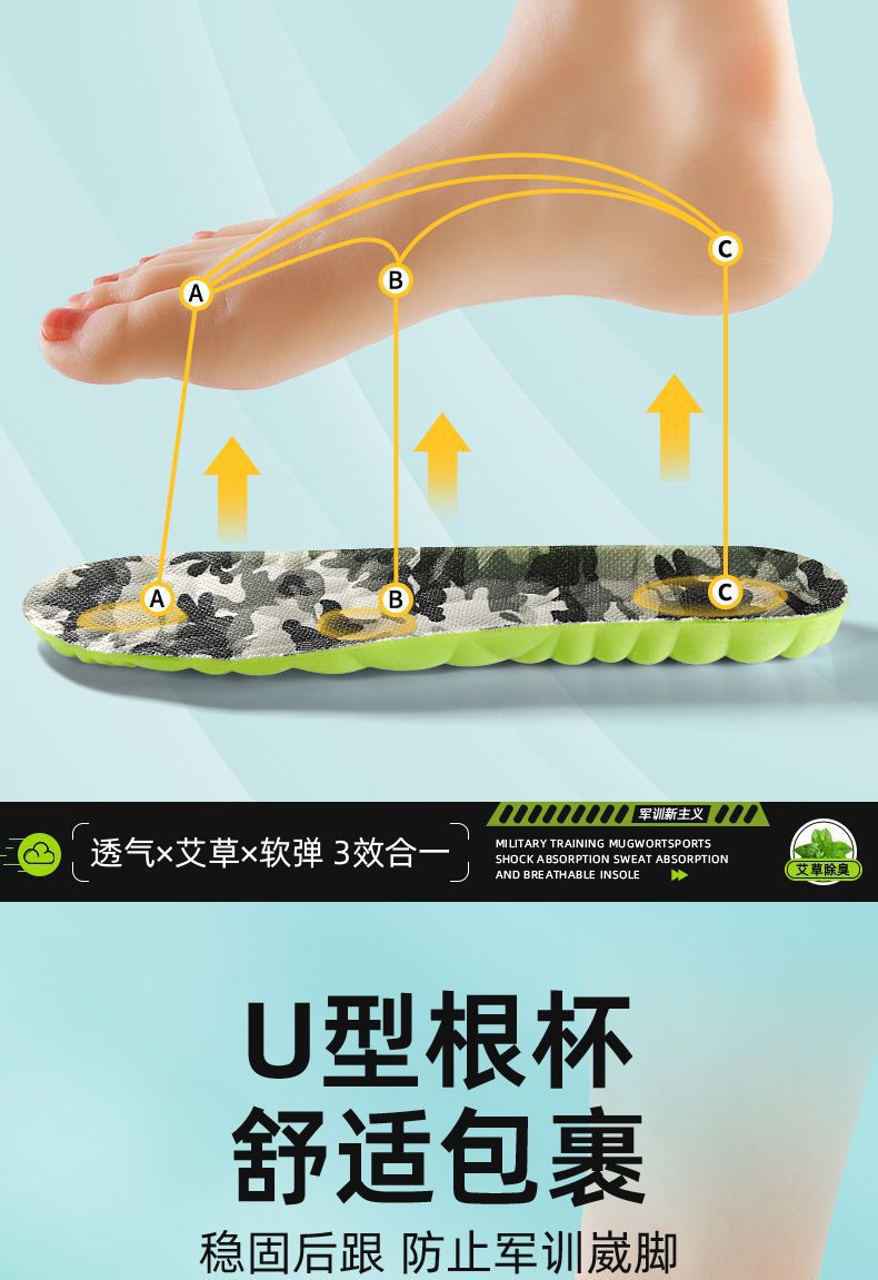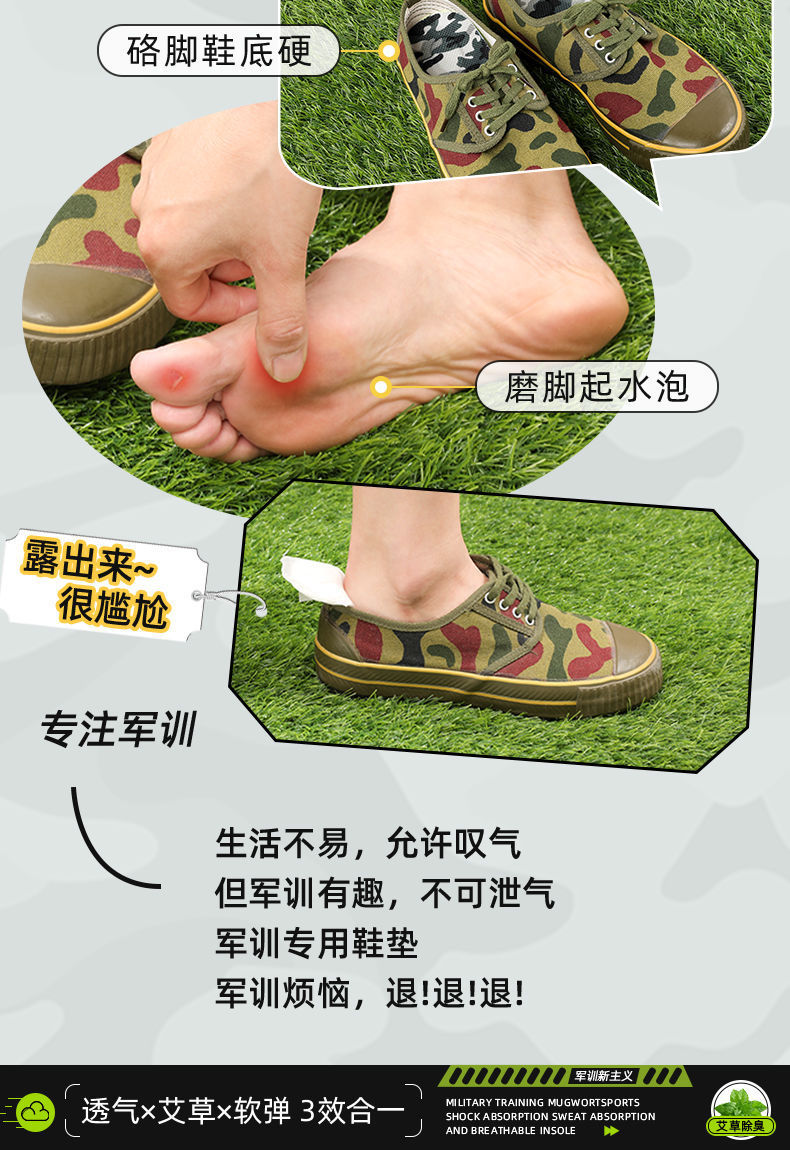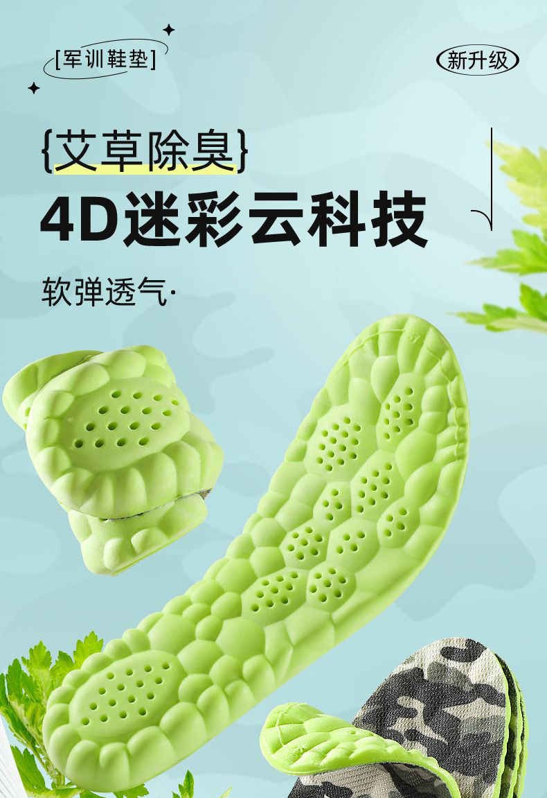 군훈련용 깔창, 부드러운 밑창, 발이 피곤하지 않음, 편안하고 통기성, 땀 흡수 및 탈취 깔창, 편안하고 부드러운 스포츠 깔창스토어 가기
