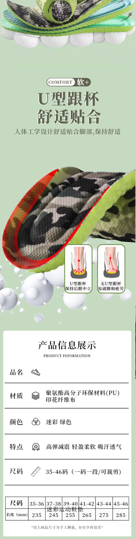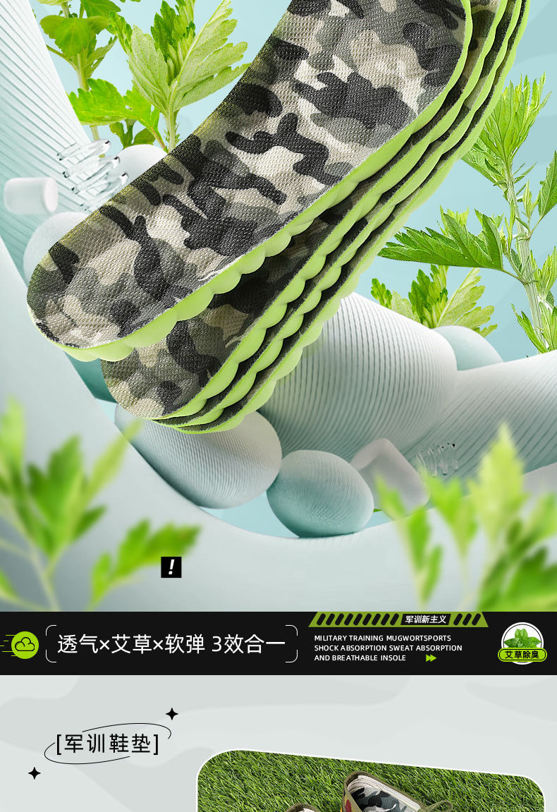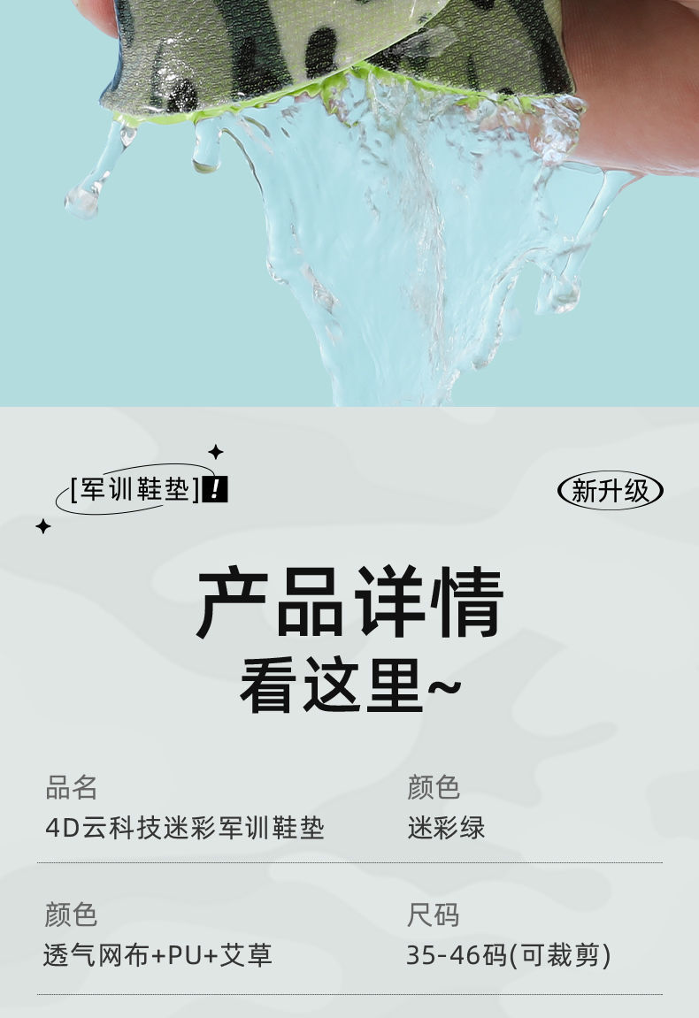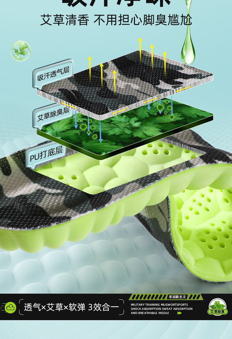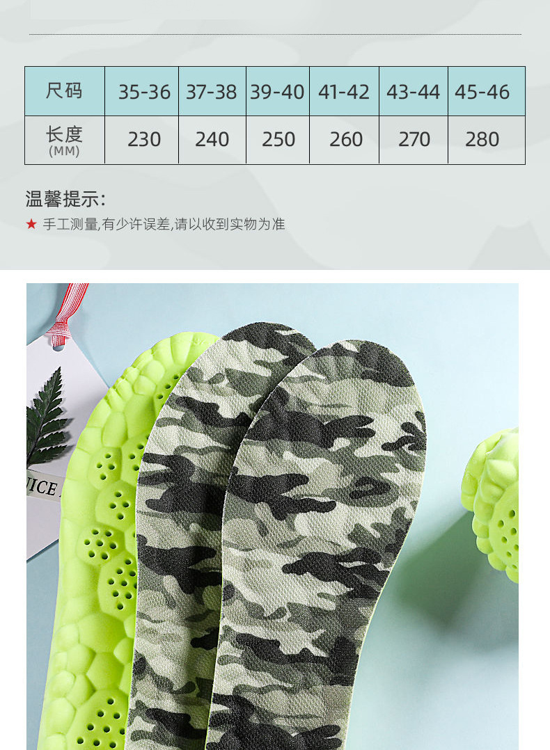 군훈련용 깔창, 부드러운 밑창, 발이 피곤하지 않음, 편안하고 통기성, 땀 흡수 및 탈취 깔창, 편안하고 부드러운 스포츠 깔창스토어 가기