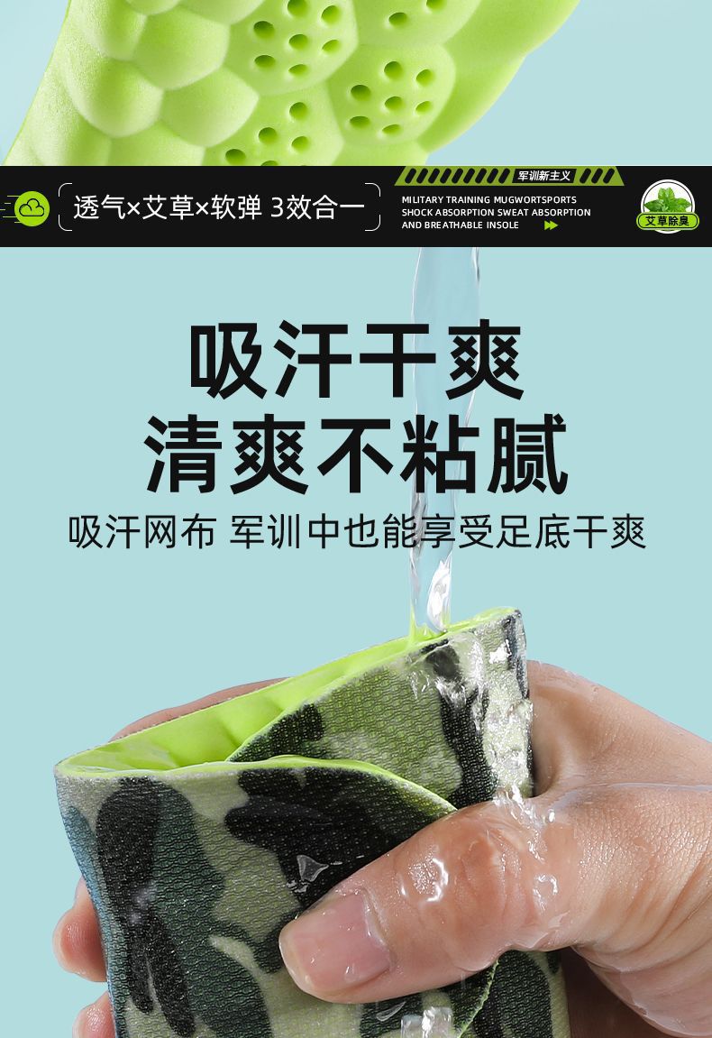 군훈련용 깔창, 부드러운 밑창, 발이 피곤하지 않음, 편안하고 통기성, 땀 흡수 및 탈취 깔창, 편안하고 부드러운 스포츠 깔창