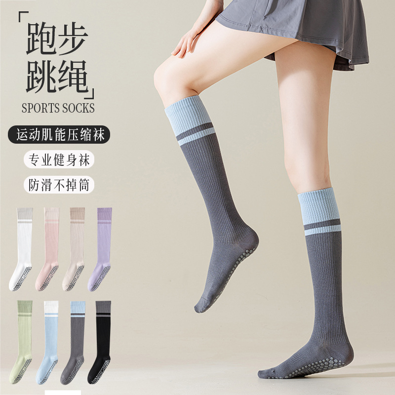 여성용 압박 양말, 전문 피트니스, 줄넘기, 러닝, 스포츠, 근육 압박, 미끄럼 방지, 하이탑 요가 종아리 양말, 롱스토어 가기