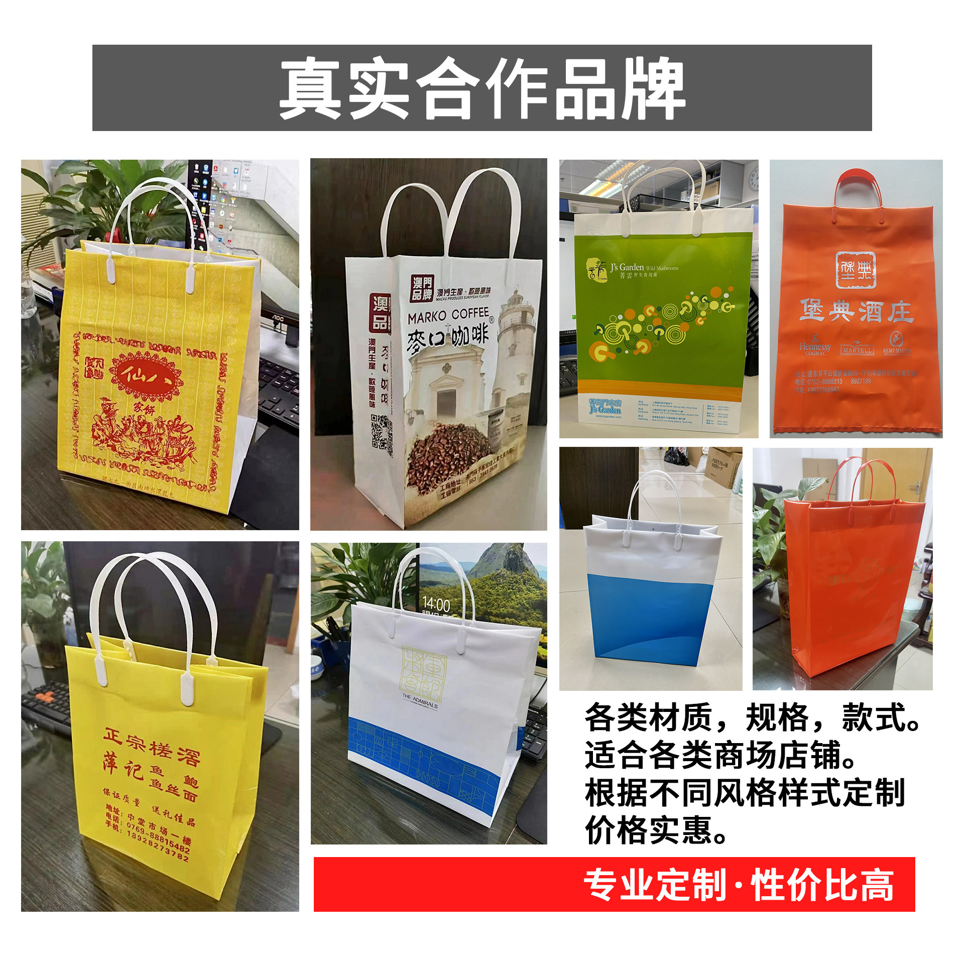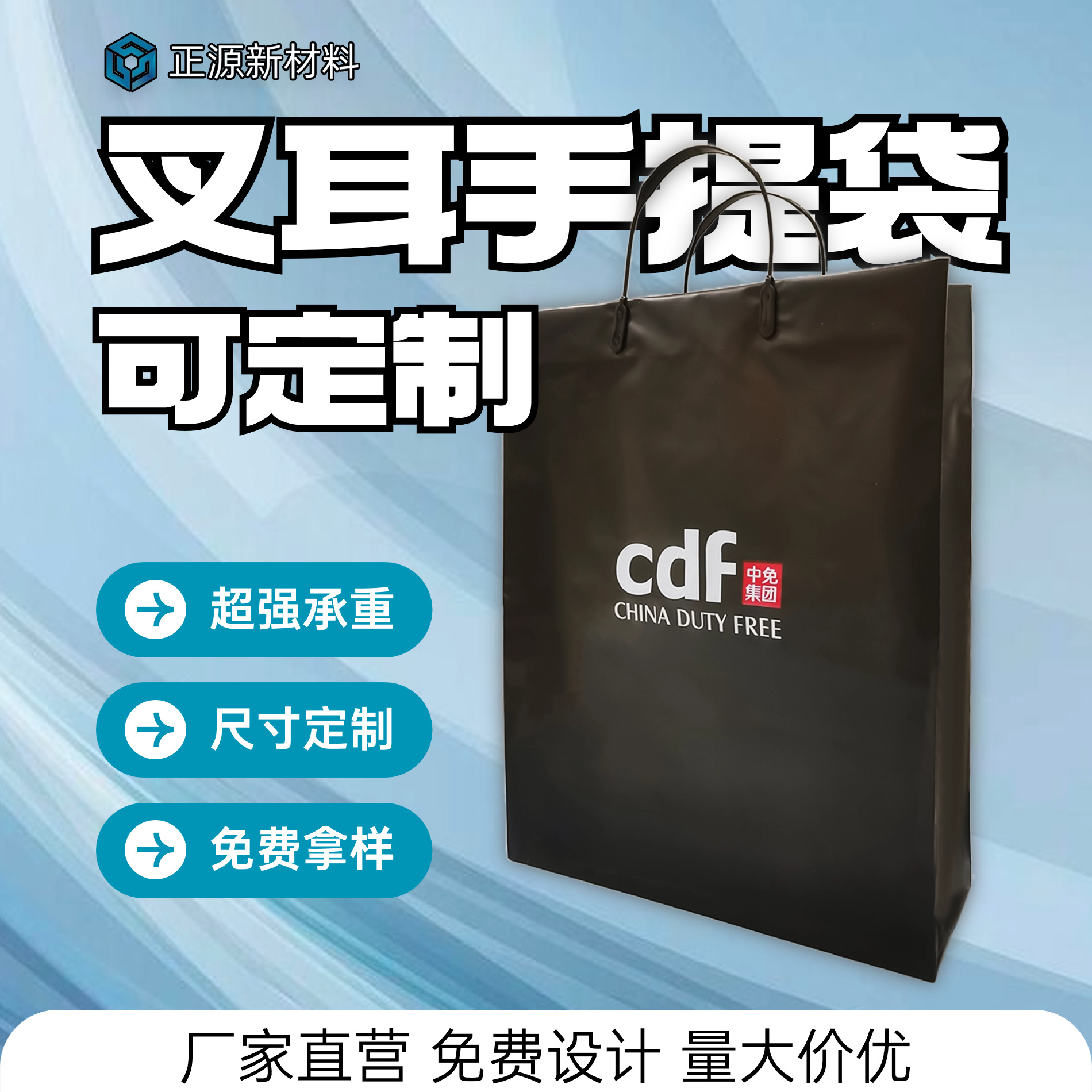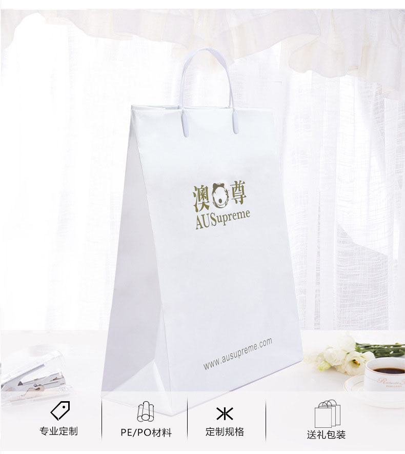 포크이어 의류 핸드백 비닐봉투 컬러 인쇄 브랜드 화장품 선물점 PE 손잡이가 있는 사각 바닥 가방 맞춤 인쇄