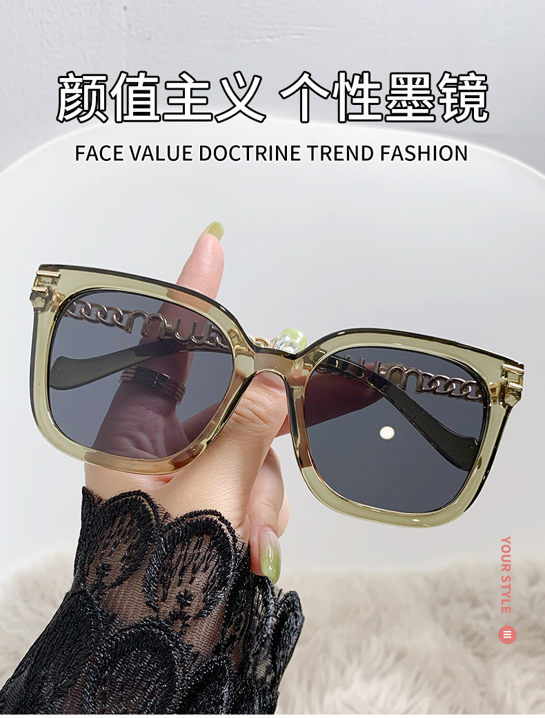 패션 골드 체인 레그 선글라스 여성 하이 엔드 센스 스퀘어 안티 UV 선글라스 운전 여행 인터넷 인기 유행 안경스토어 가기