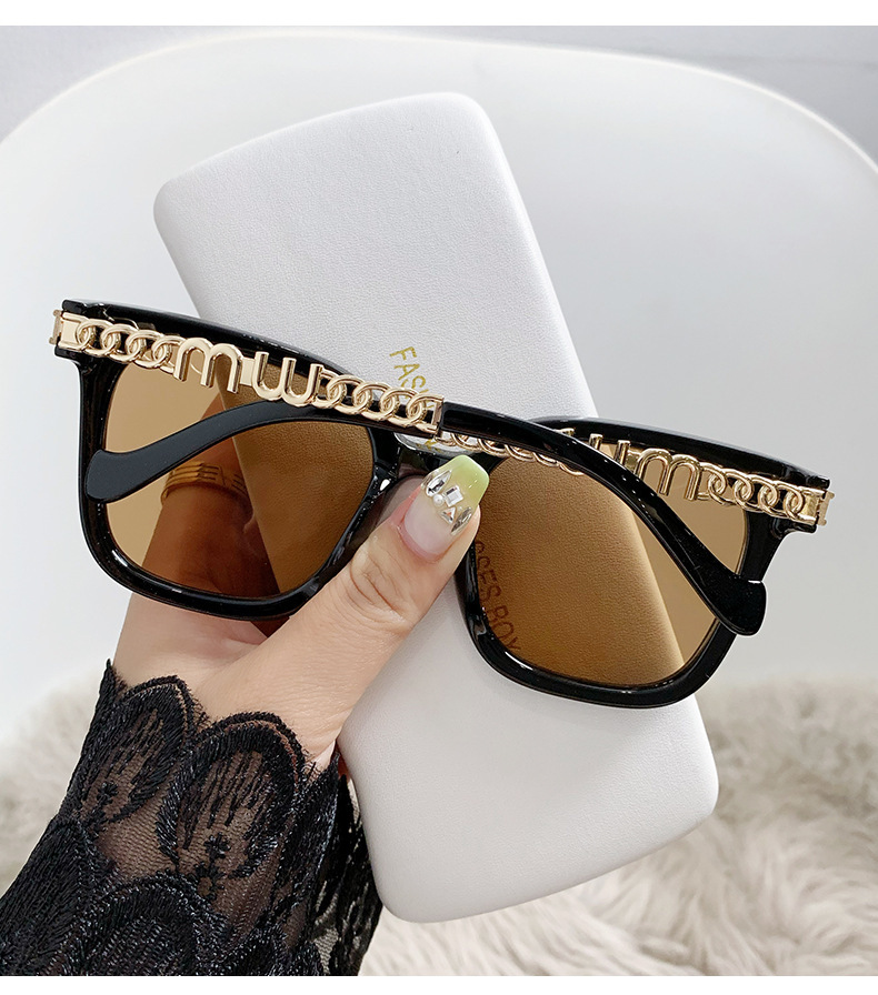 패션 골드 체인 레그 선글라스 여성 하이 엔드 센스 스퀘어 안티 UV 선글라스 운전 여행 인터넷 인기 유행 안경