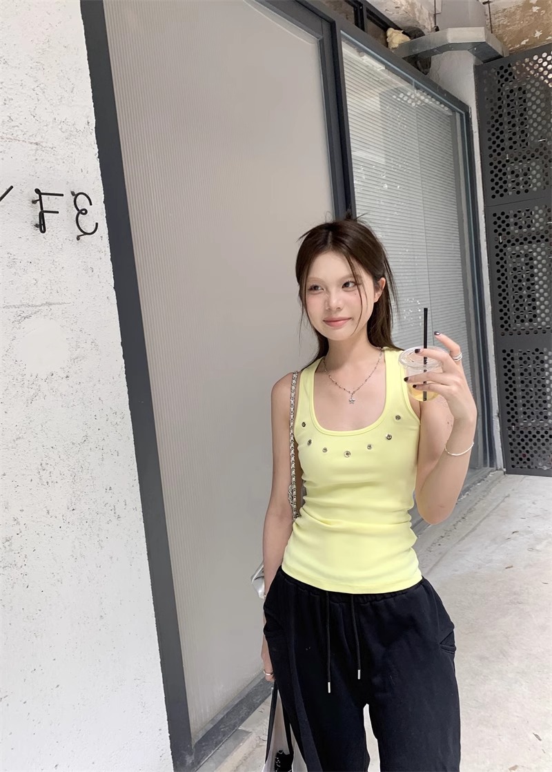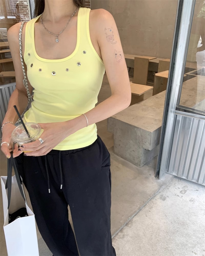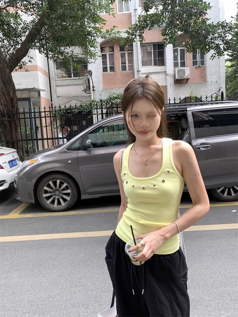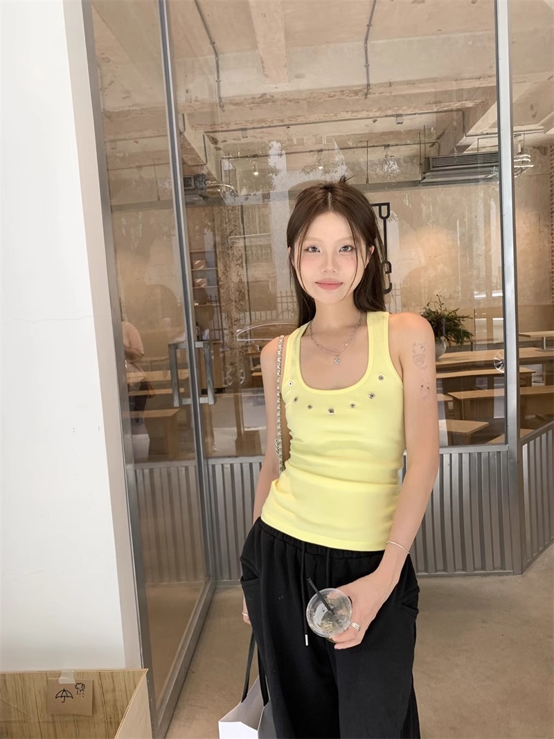노란색 할로우 아웃 카미 솔 여성 여름 얇은 새 스타일 도파민 착용 스파이스 걸스 민소매 베이스 탑 트렌디