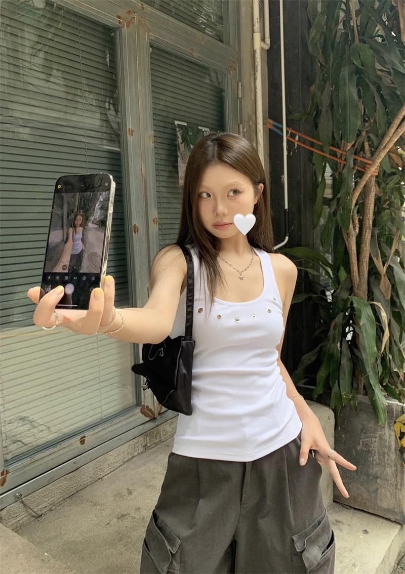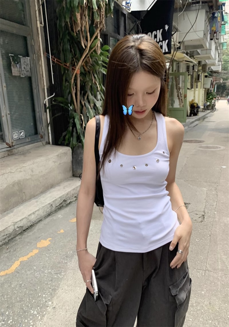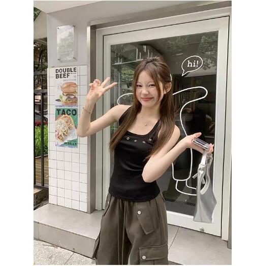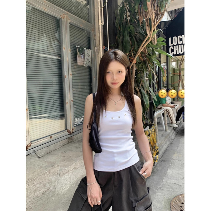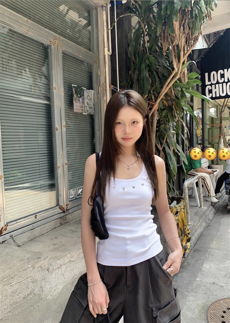 노란색 할로우 아웃 카미 솔 여성 여름 얇은 새 스타일 도파민 착용 스파이스 걸스 민소매 베이스 탑 트렌디