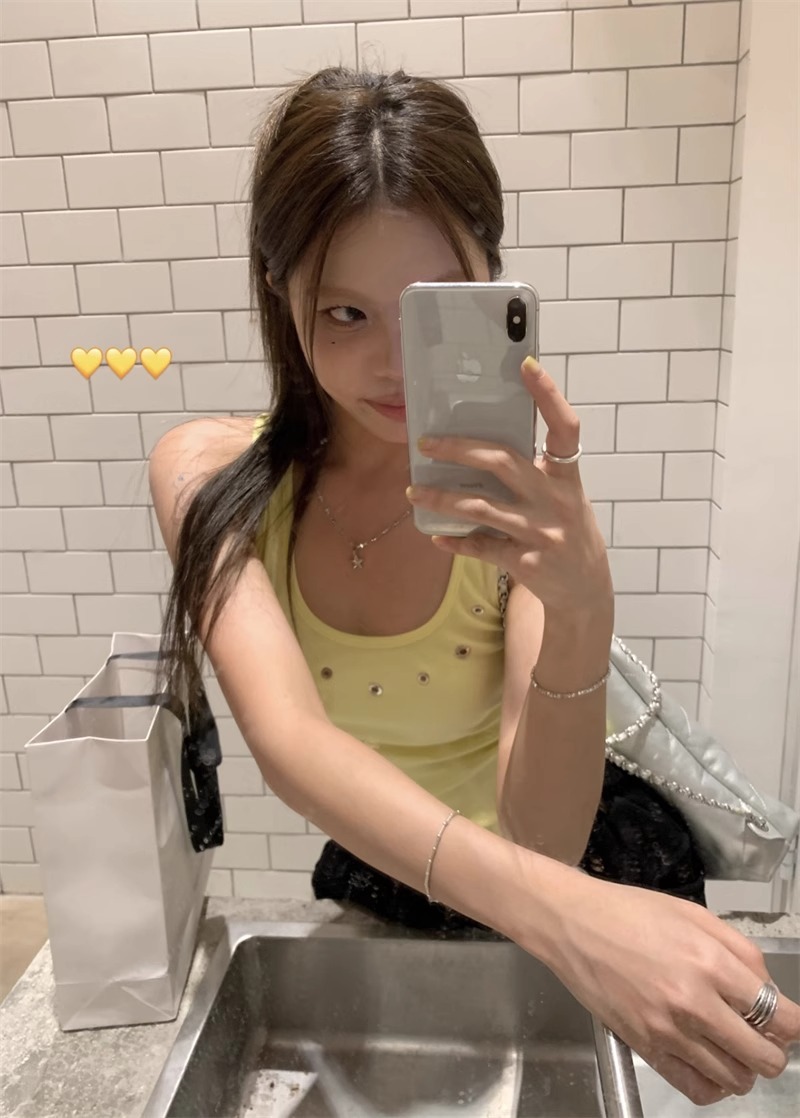 노란색 할로우 아웃 카미 솔 여성 여름 얇은 새 스타일 도파민 착용 스파이스 걸스 민소매 베이스 탑 트렌디스토어 가기