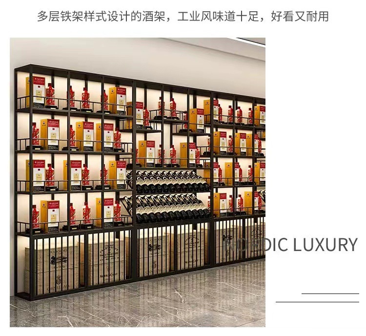 와인 레스토랑 고급 철제 와인랙 바 바닥형 와인 캐비닛 와인 보관 진열대 와인잔 홀더스토어 가기