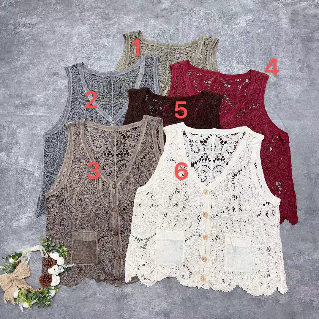 炒色腰果花钩花镂空马甲