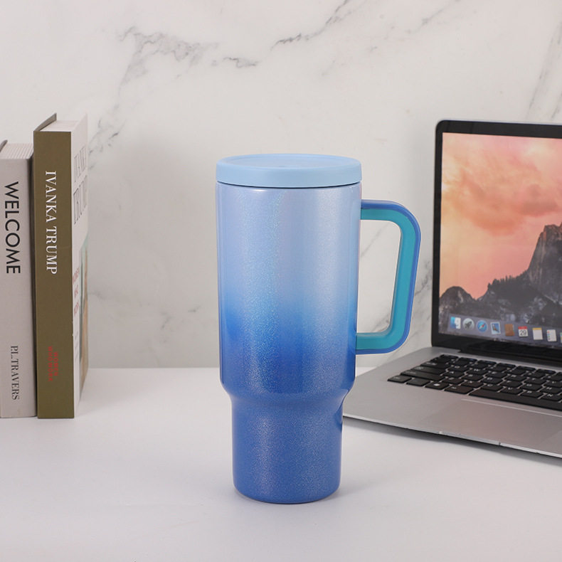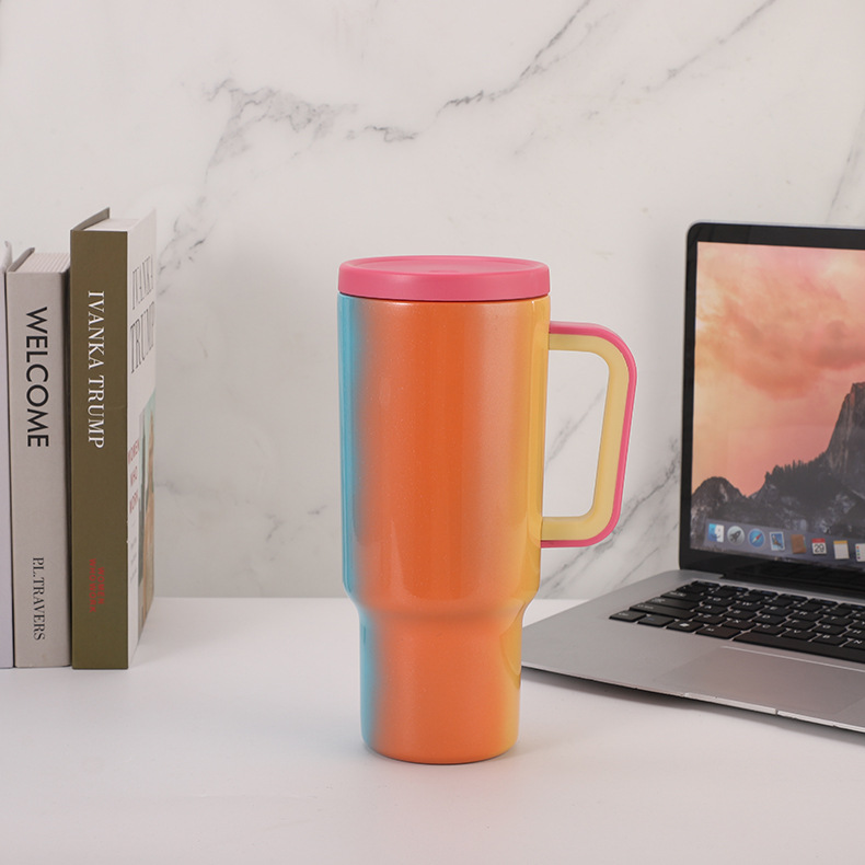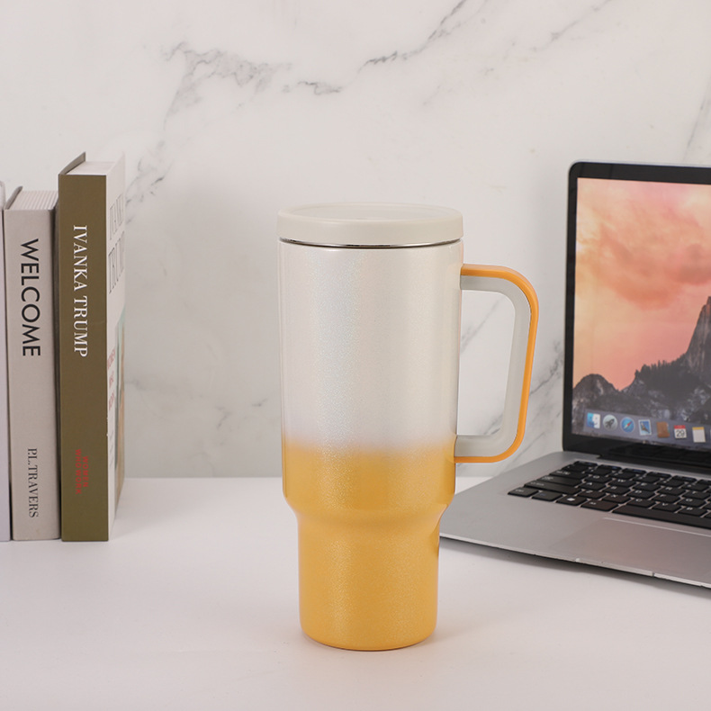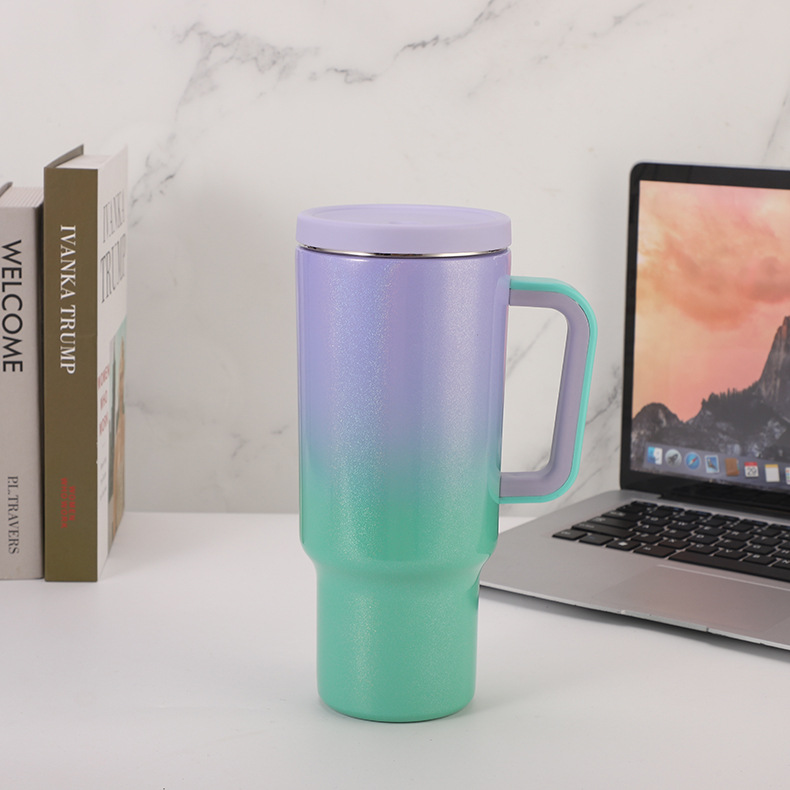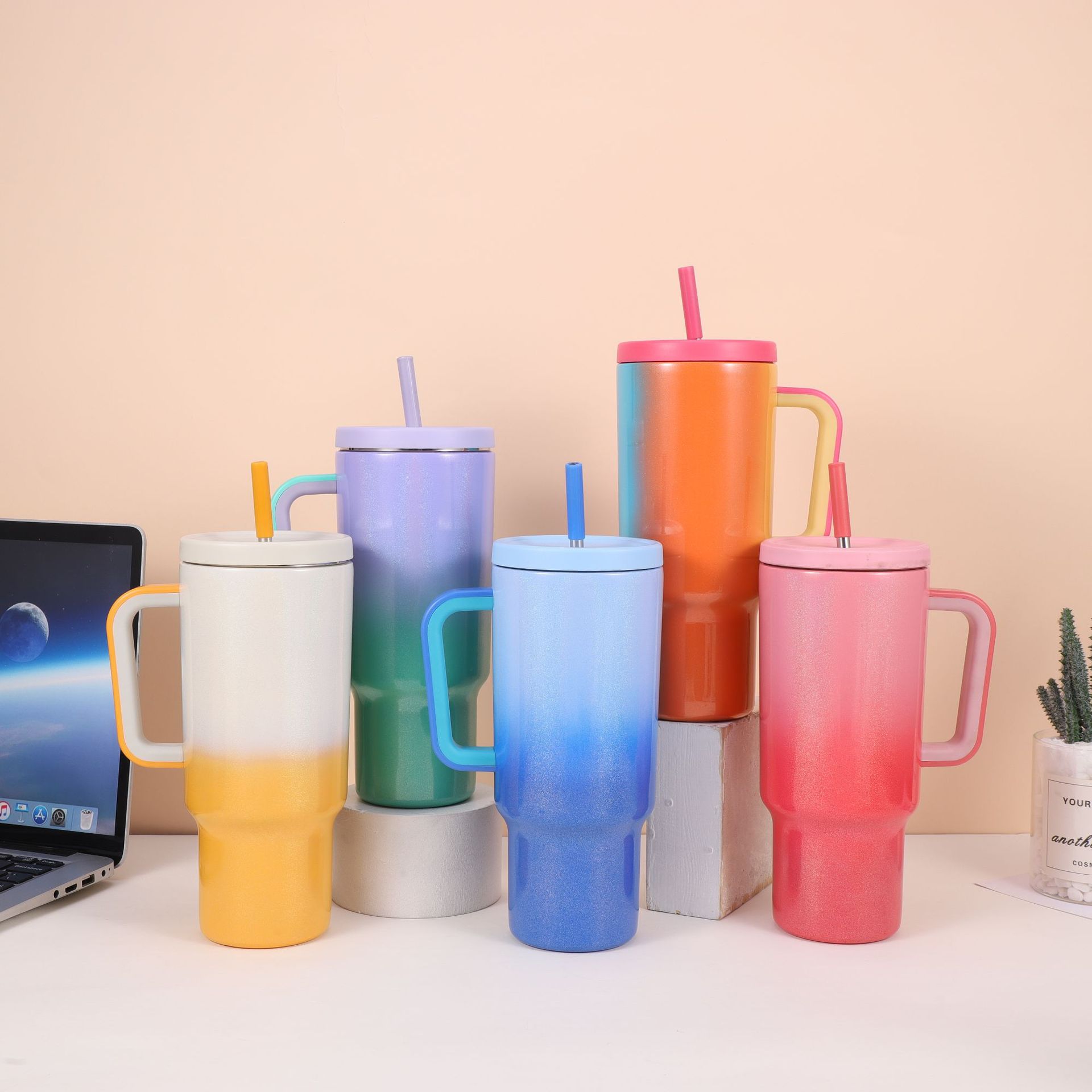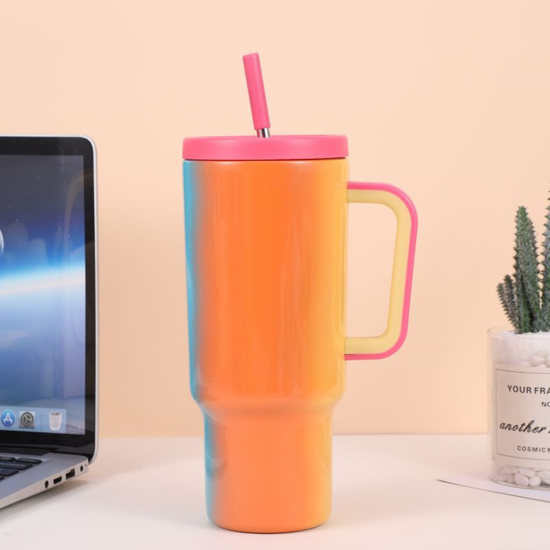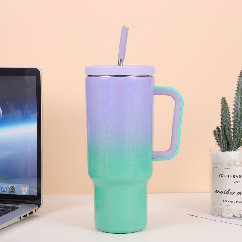 새로운 국경 그라디언트 40oz 아이스 컵 핸들 대용량 304 스테인레스 스틸 보온병 컵 휴대용 자동차 컵