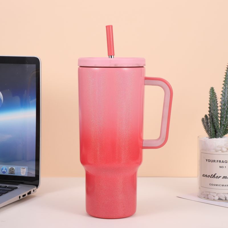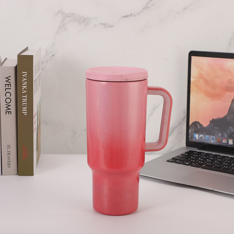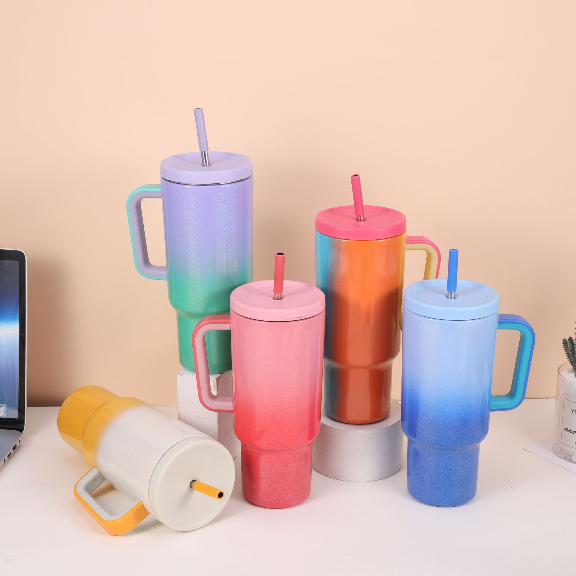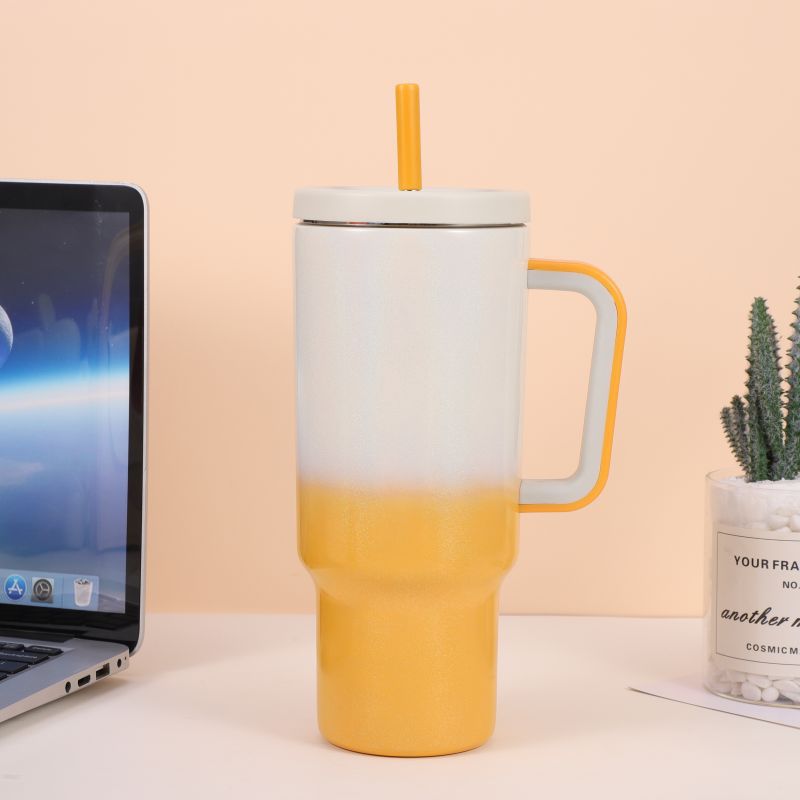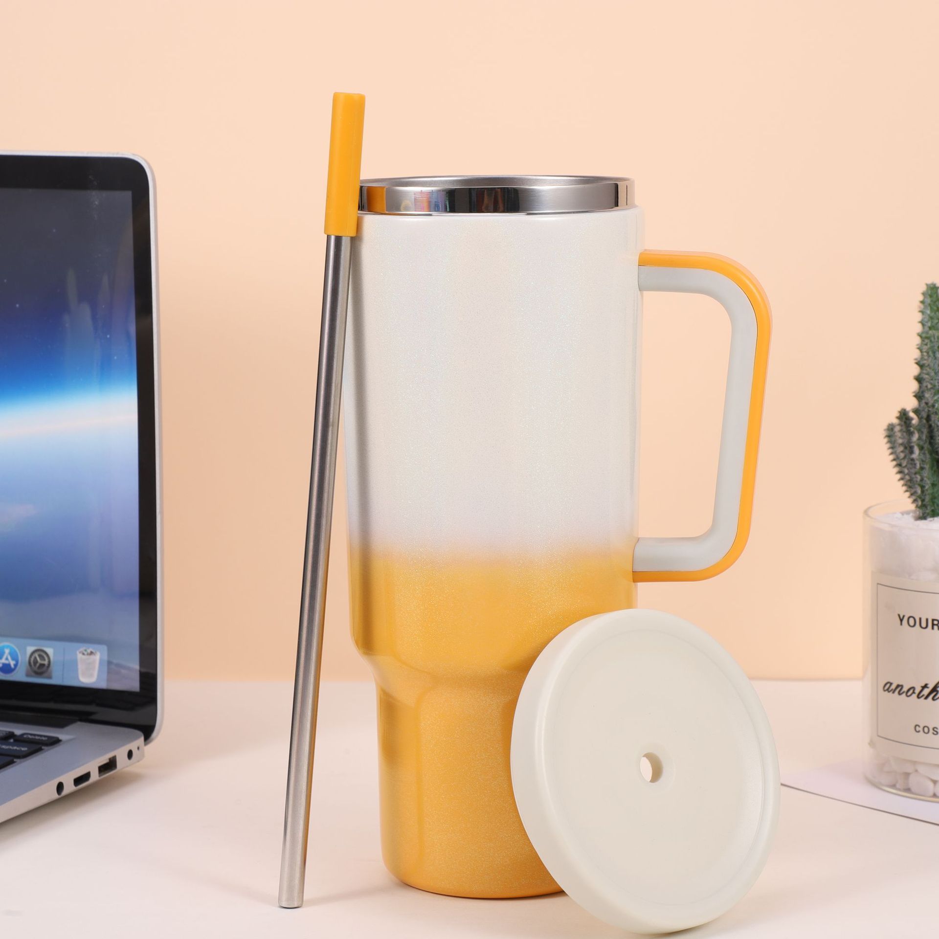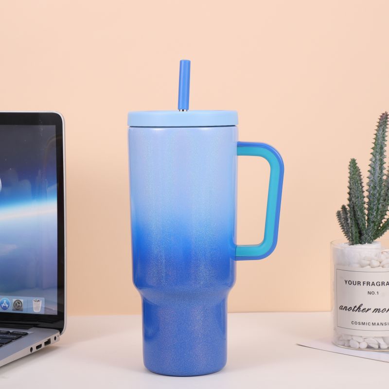 새로운 국경 그라디언트 40oz 아이스 컵 핸들 대용량 304 스테인레스 스틸 보온병 컵 휴대용 자동차 컵