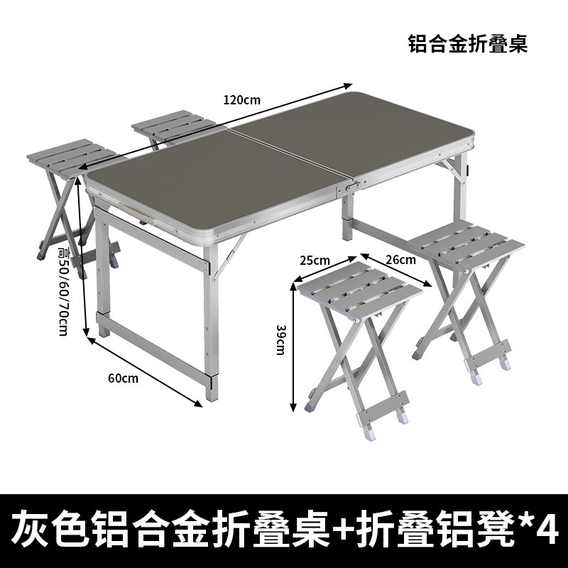 • 그레이 블랙 + 알루미늄 스툴 4개 [길이 120, 폭 60, 높이 조절 가능] [설치 불필요]⭐두꺼워진