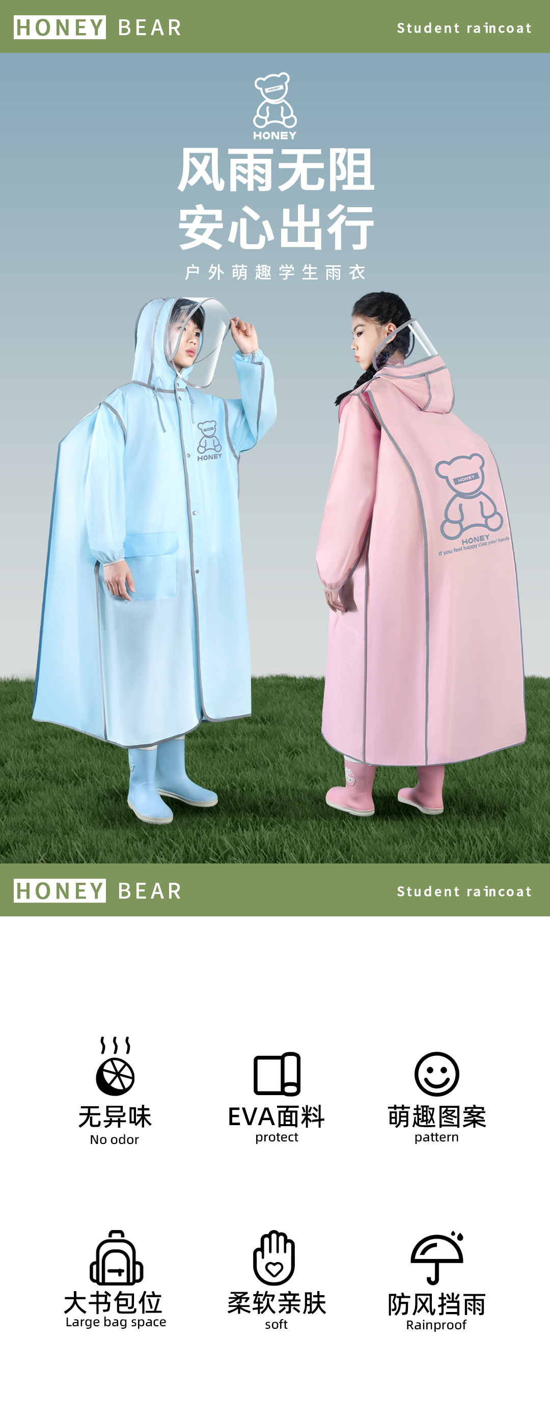 초등학교 및 중등 학교 학생을위한 어린이 비옷 스쿨 폰초와 함께 긴 전신 하이킹 남녀스토어 가기