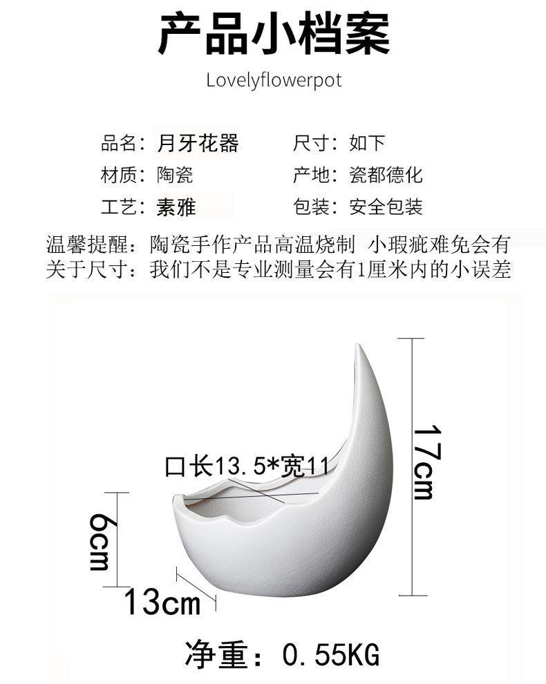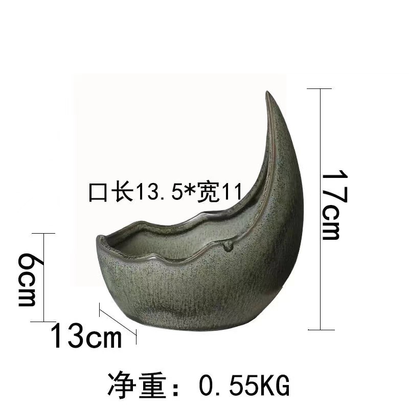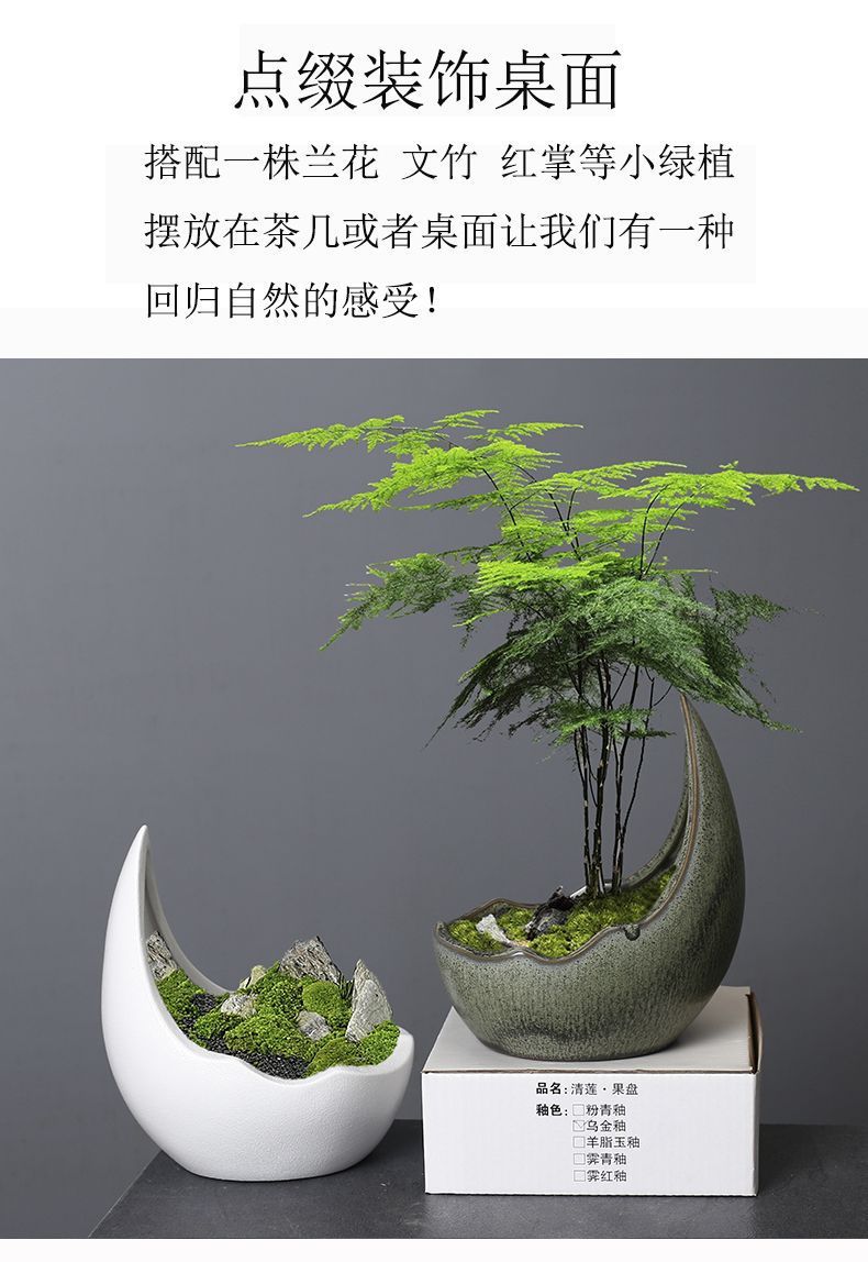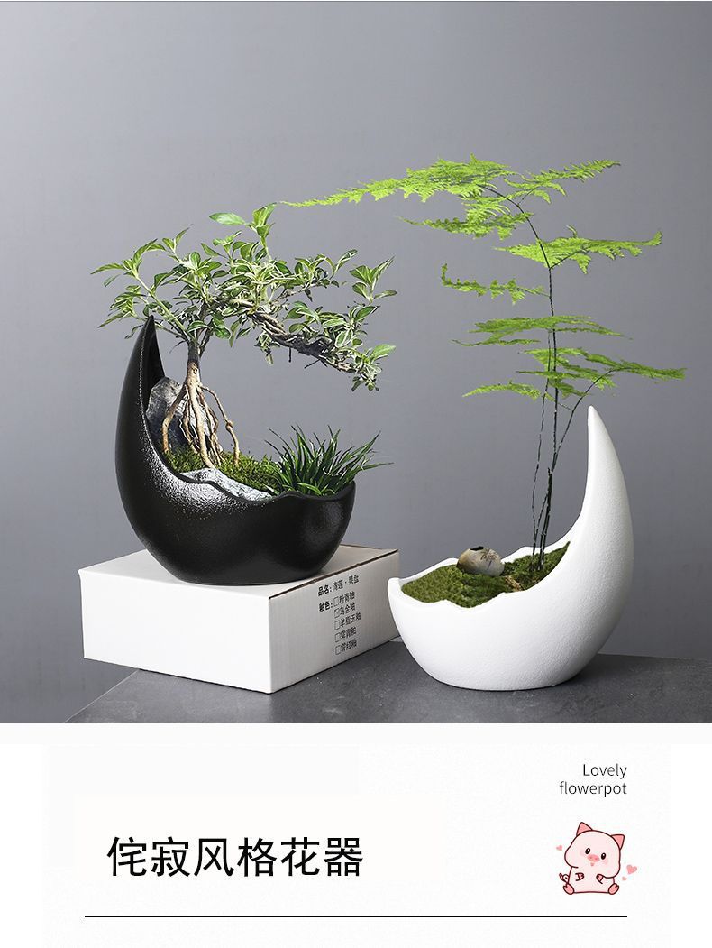 대형 초승달 흑백 거친 세라믹 꽃 화분 녹색 식물 다육 비 다공성 수경 실내 및 실외 사용