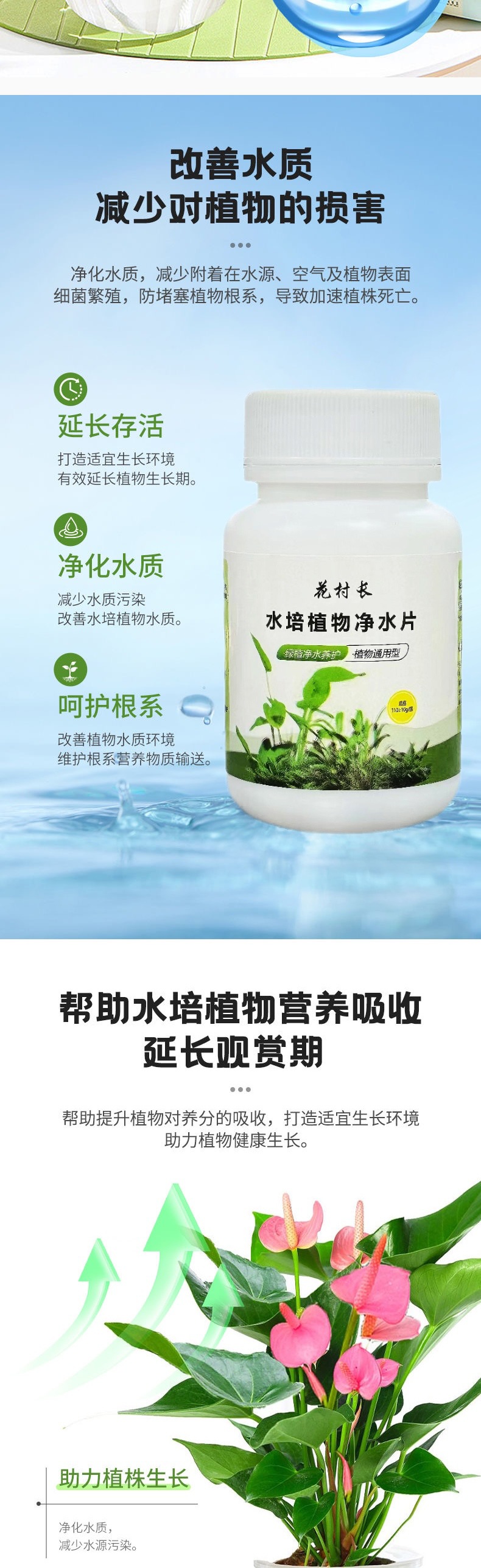 수경 식물 정수 정제 소독제 정제 신선한 꽃 보존 물 정화제 영양제 솔루션 꽃 가게는 수질을 정화하여 흐르는 기간을 연장합니다.스토어 가기